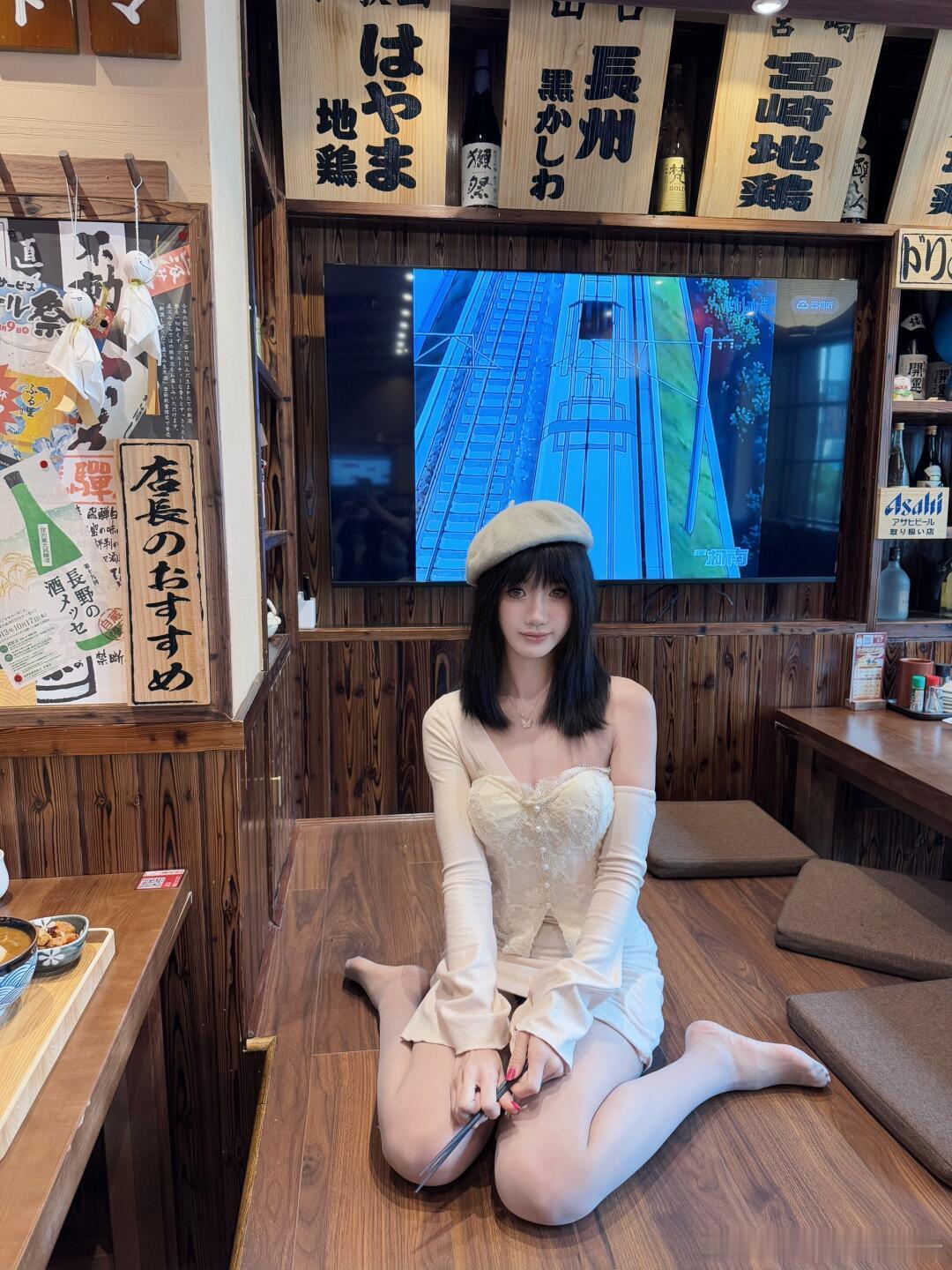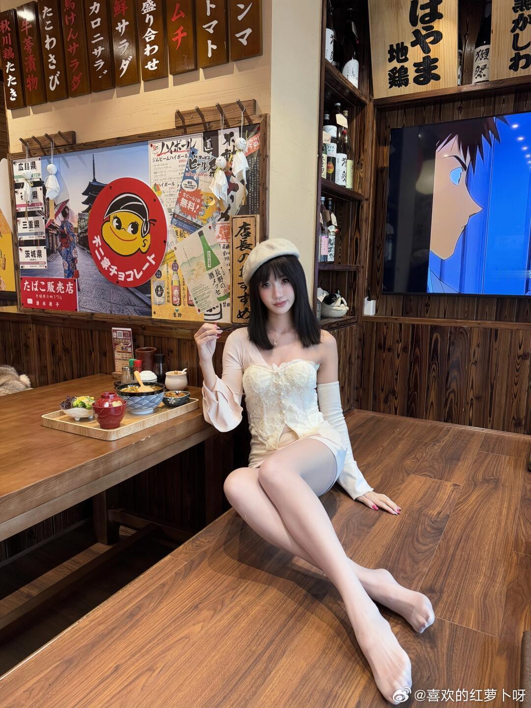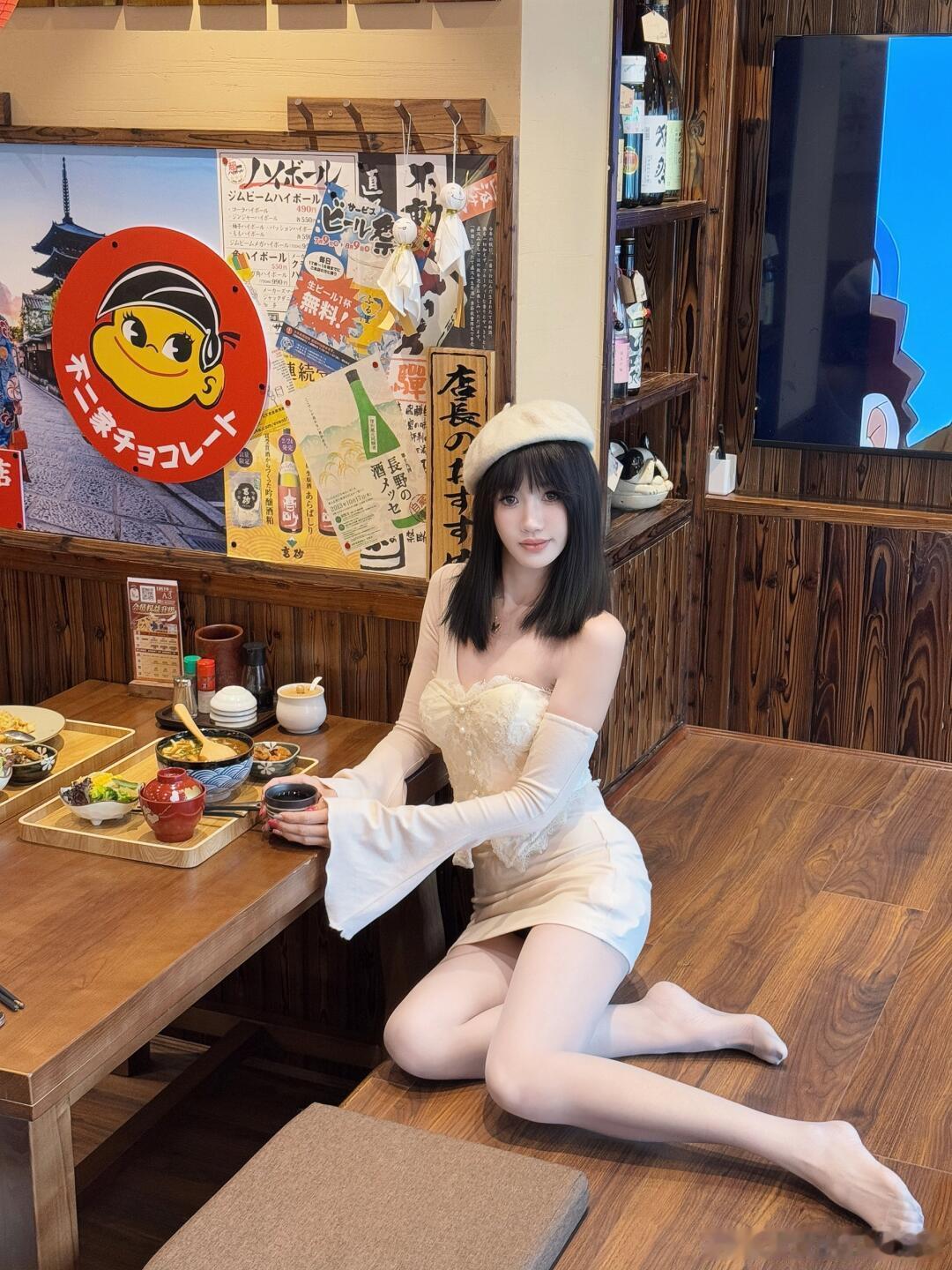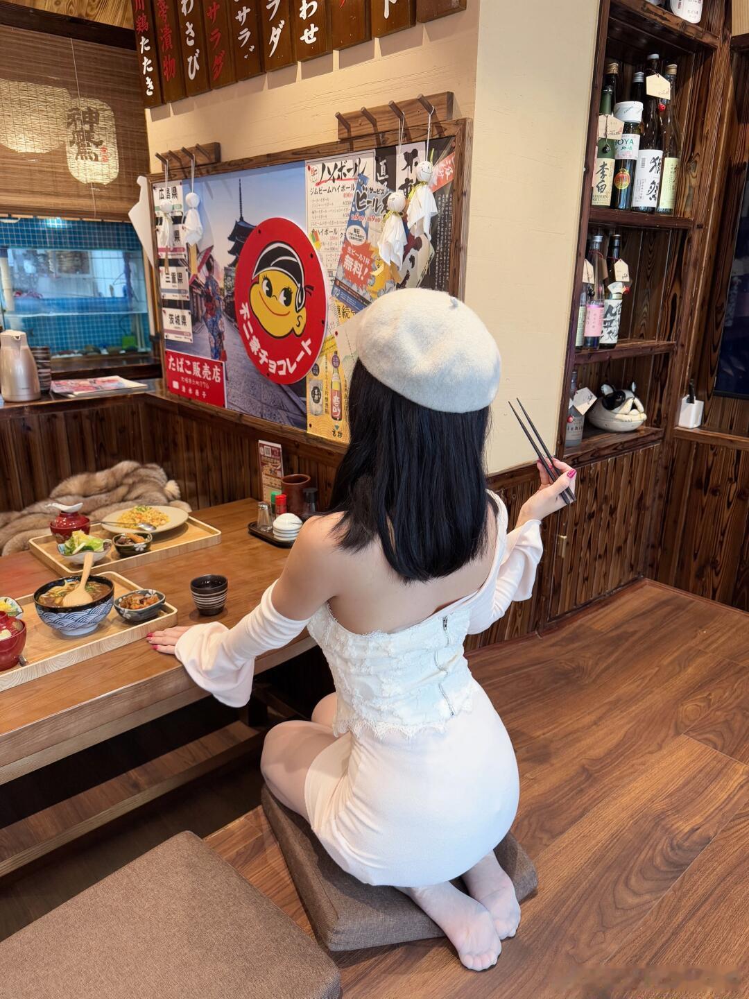 吃日料要脱鞋,露出丝袜小jiojio~