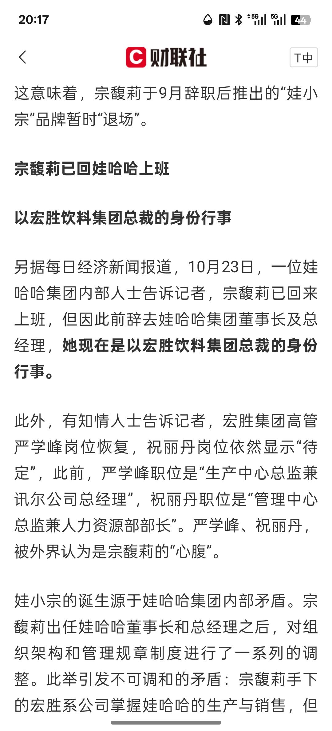 宗馥莉已回“娃哈哈”上班,这感觉就像是玩过家家一样,一会离职,一会上班。 家族之争,权力之争,最后搞的家族不和睦!一旦有钱,权力,内部矛盾非常的激烈!