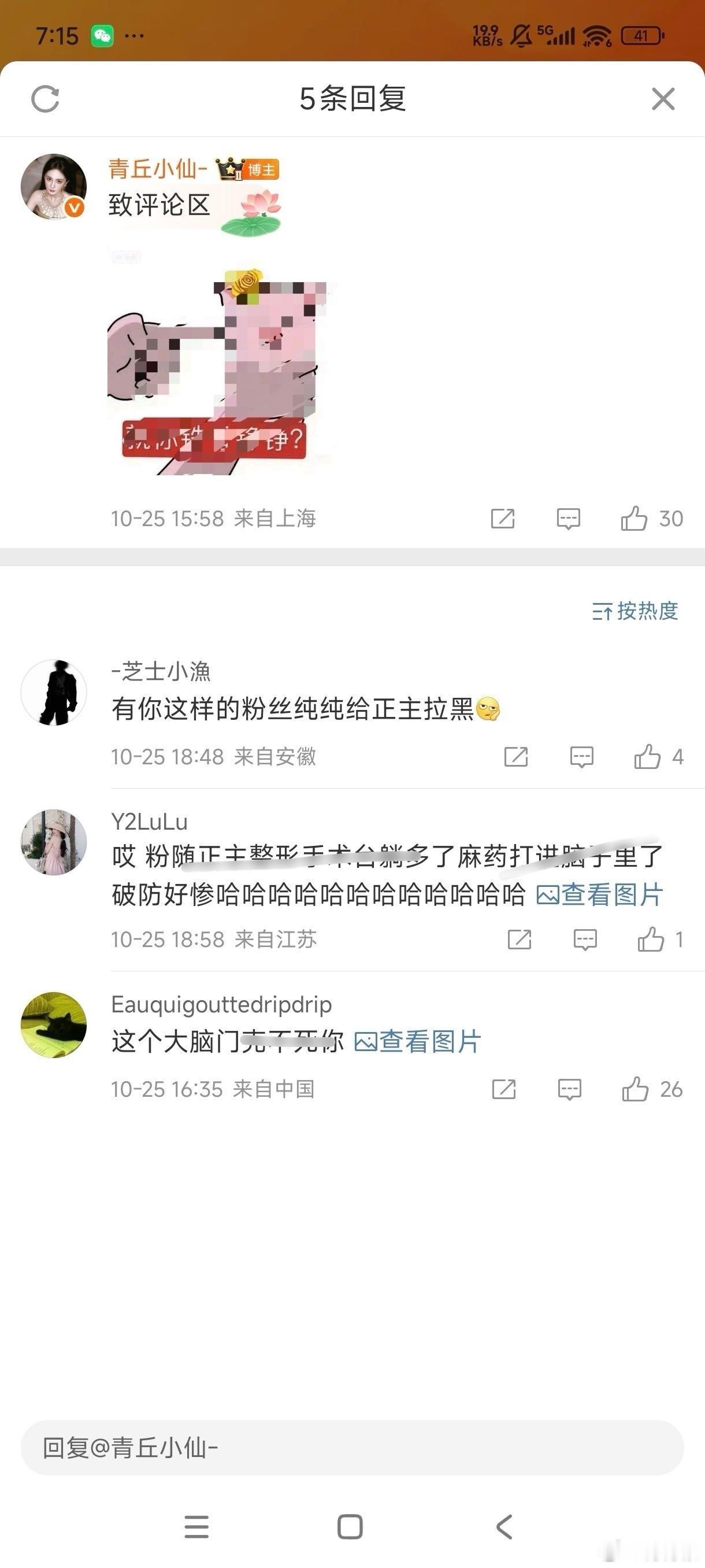 在路人多的地方尤其是微博公共热s放人家所谓的“黑图”嘲人家神仙姐姐颜值不是破防疯了就是智商堪忧[笑cry]