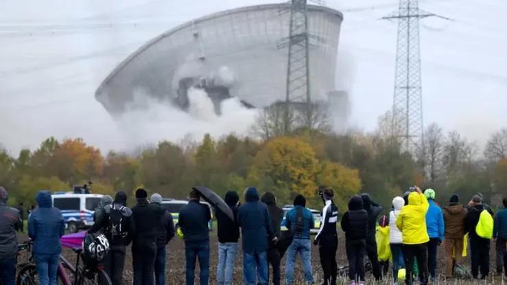 德国最后的核电站——贡德雷明根核电站的两座160米高的冷却塔被炸毁。由于采用了定