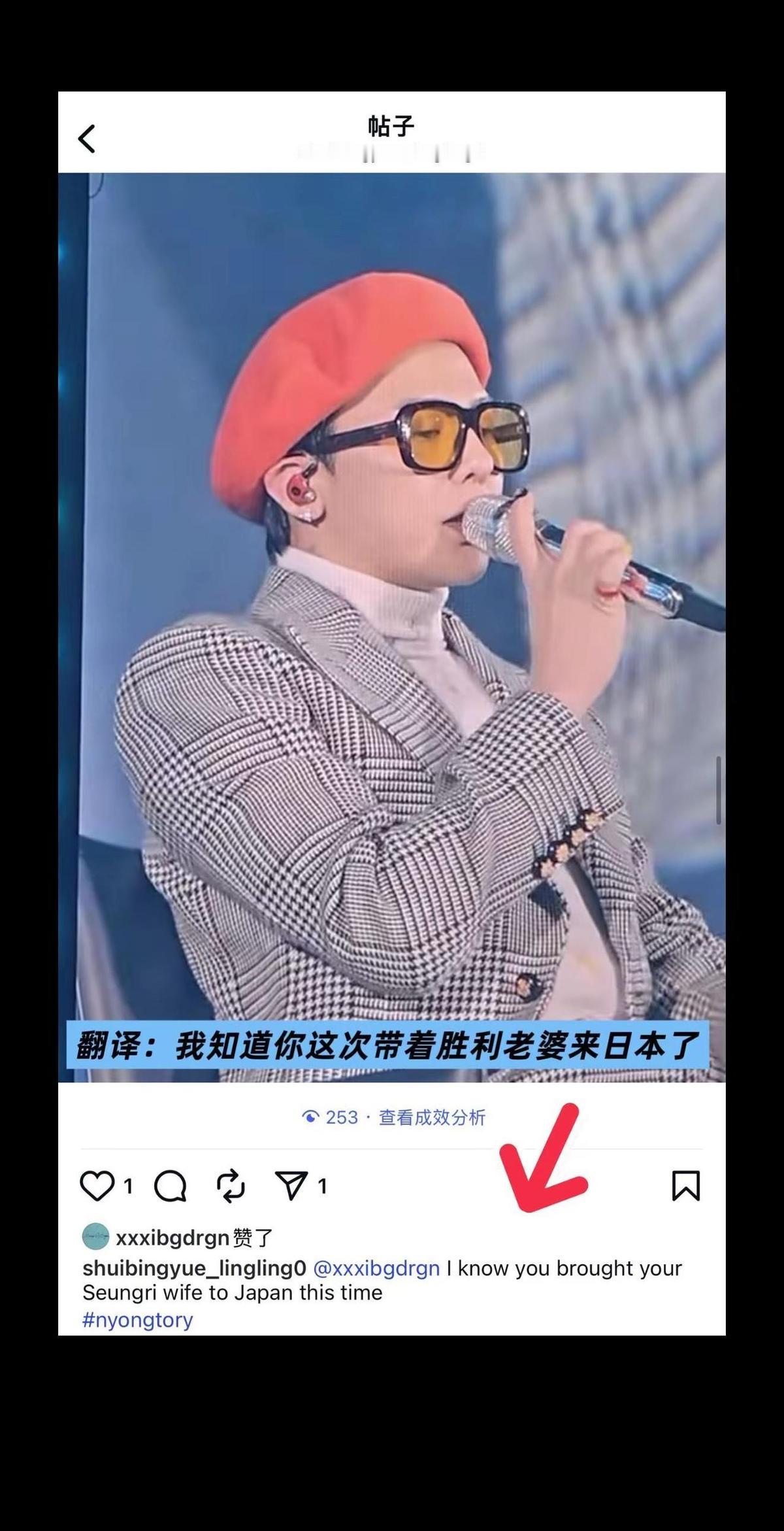 权志龙点赞了条“带胜利老婆来日本”的帖子,评论区炸了。 没人知道胜利有没有老婆,但粉丝先脑补了一部韩剧。 他刚在日本开完巡演,台下尖叫震得屋顶快掀了。 点赞那条动态,没解释,没否认,像扔了颗糖进水里——你猜是甜的,还是酸的? 粉丝嗑CP,艺人不拆台。 这不是官宣,是默契。 你当真,他当乐。 韩国娱乐圈这潭水,从来不靠嘴说,靠眼神、点赞、沉默。 你越急着要答案,他越让你自己编结局。 胜利没结婚,权志龙也没承认。 可那条点赞,比一万句“我们只是朋友”都耐人寻味。