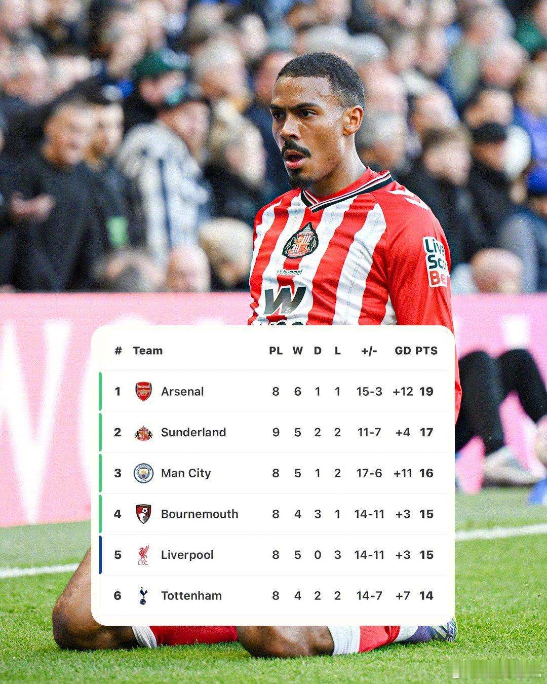 【凶猛升班马】英超升班马桑德兰客场2比1击败切尔西,9轮拿到17分,目前暂居积分榜第二,这是他们队史同期拿分最多的赛季!