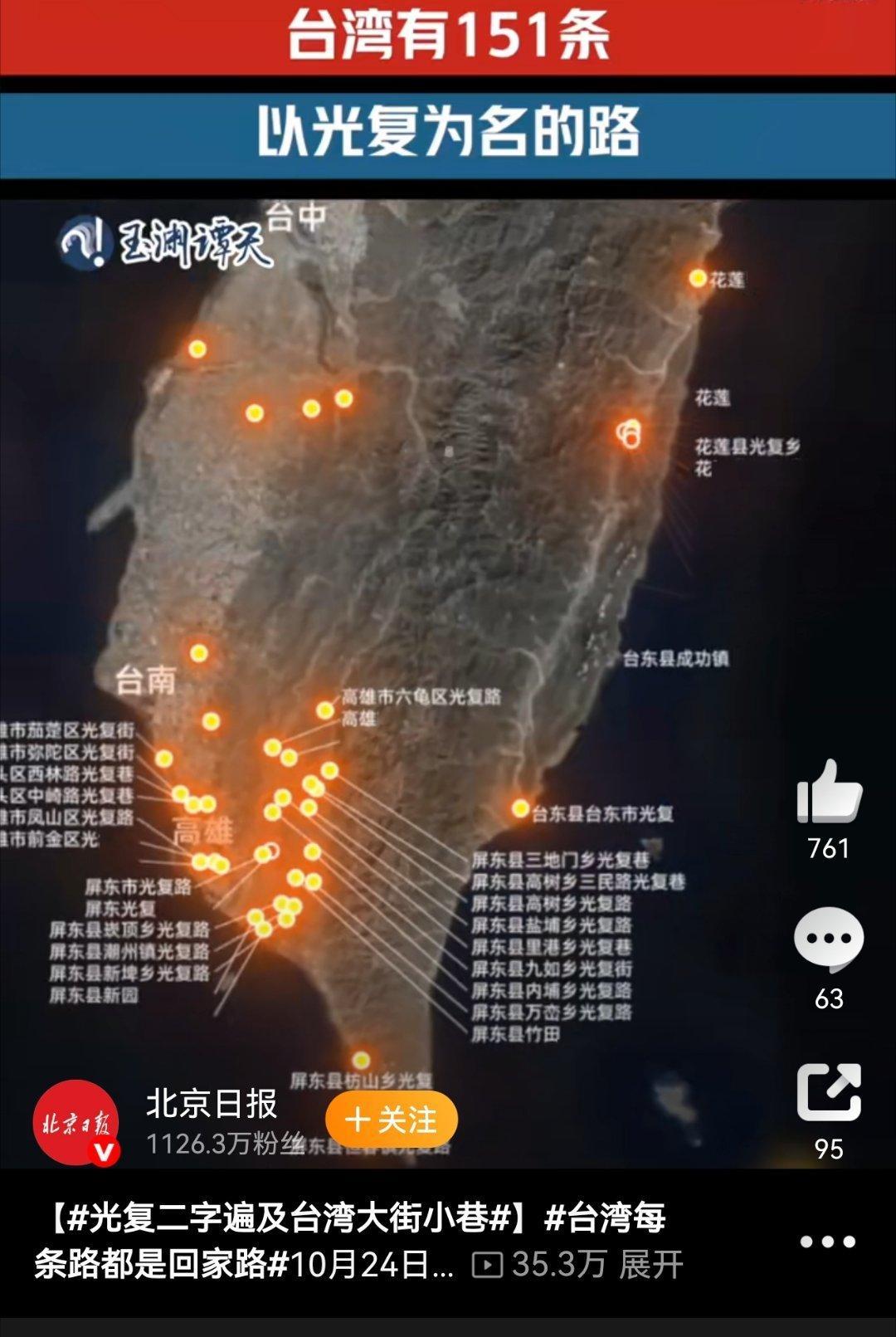 台湾光复80年了,台湾每个角落都留有光复的记忆。台湾当归,回归势在必行,也是台湾唯一出路。 ​​​