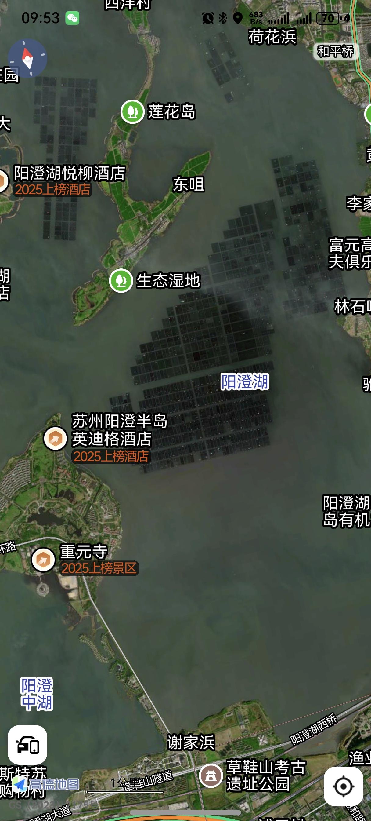 今天看高德地图,发现在苏州阳澄湖中有一片片方格子,很多。 这是养螃蟹的吗?