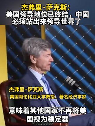 美专家:中国必须站出来了!“中国必须站出来领导世界了”,美国知名经济专家萨克斯日
