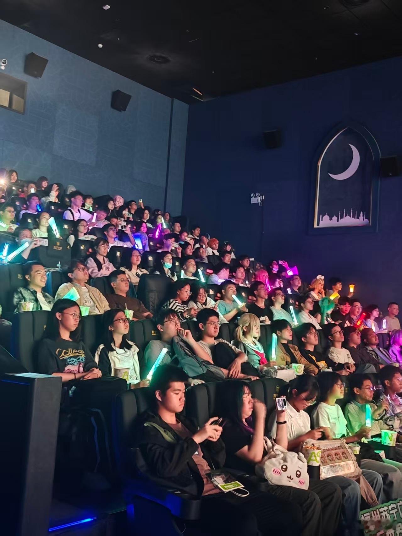没想到看完电影还有二次元军训 电影结束才是狂欢的开始!音乐响起,全员秒切军训模式,齐刷刷打call太燃了!现场发物料、被拍肩的惊喜不断,同担的快乐谁懂?主题影院装置梦幻到想二刷,这波观影体验直接封神!