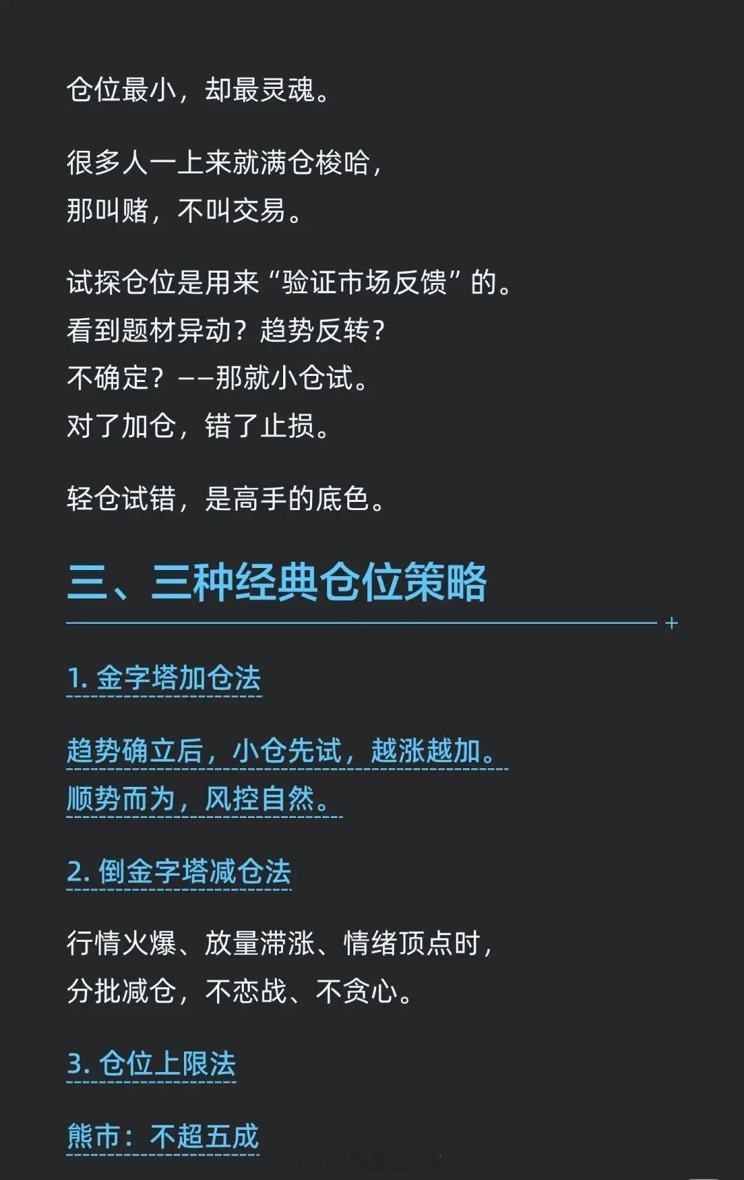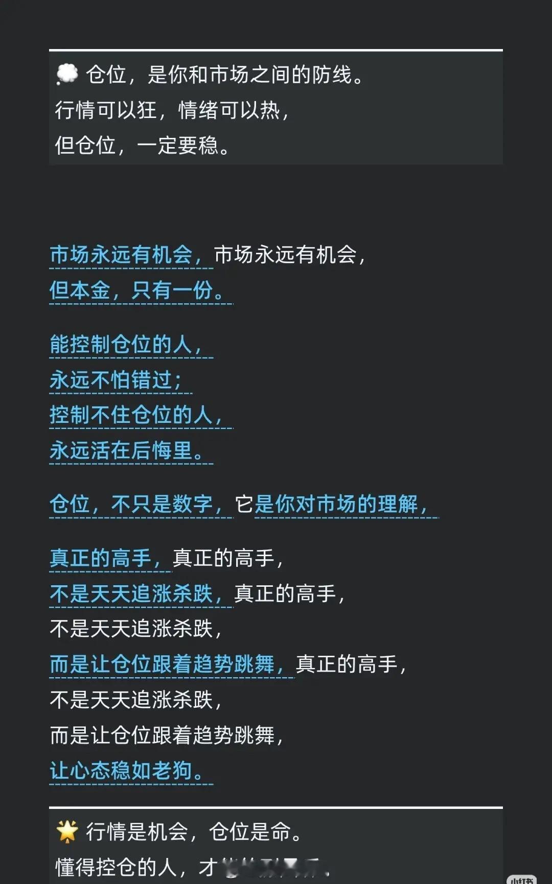 - 仓位不仅是个数字,它代表着你对市场的理解、对风险的认知和对自我的掌控。