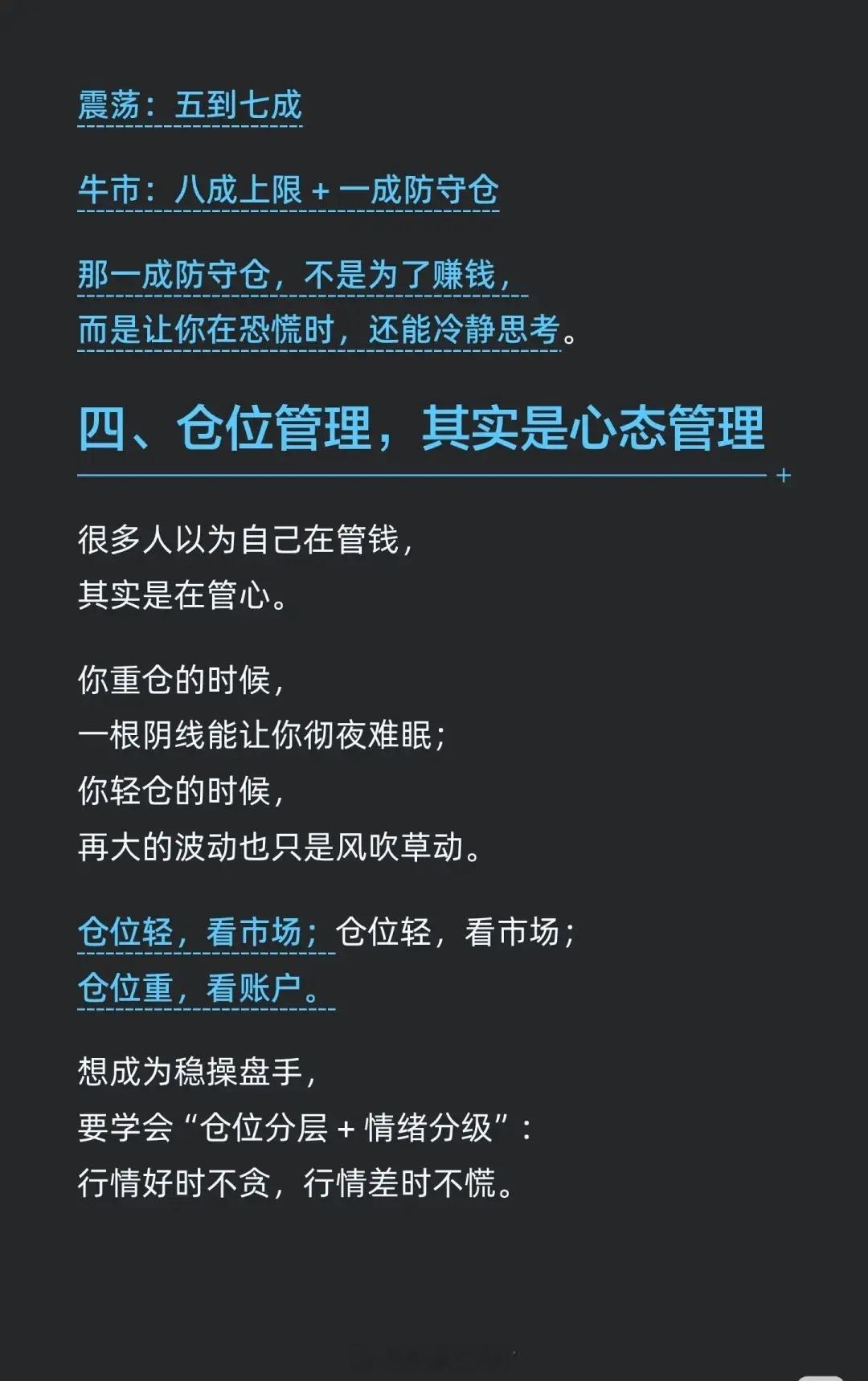 “仓位管理,其实是心态管理。”