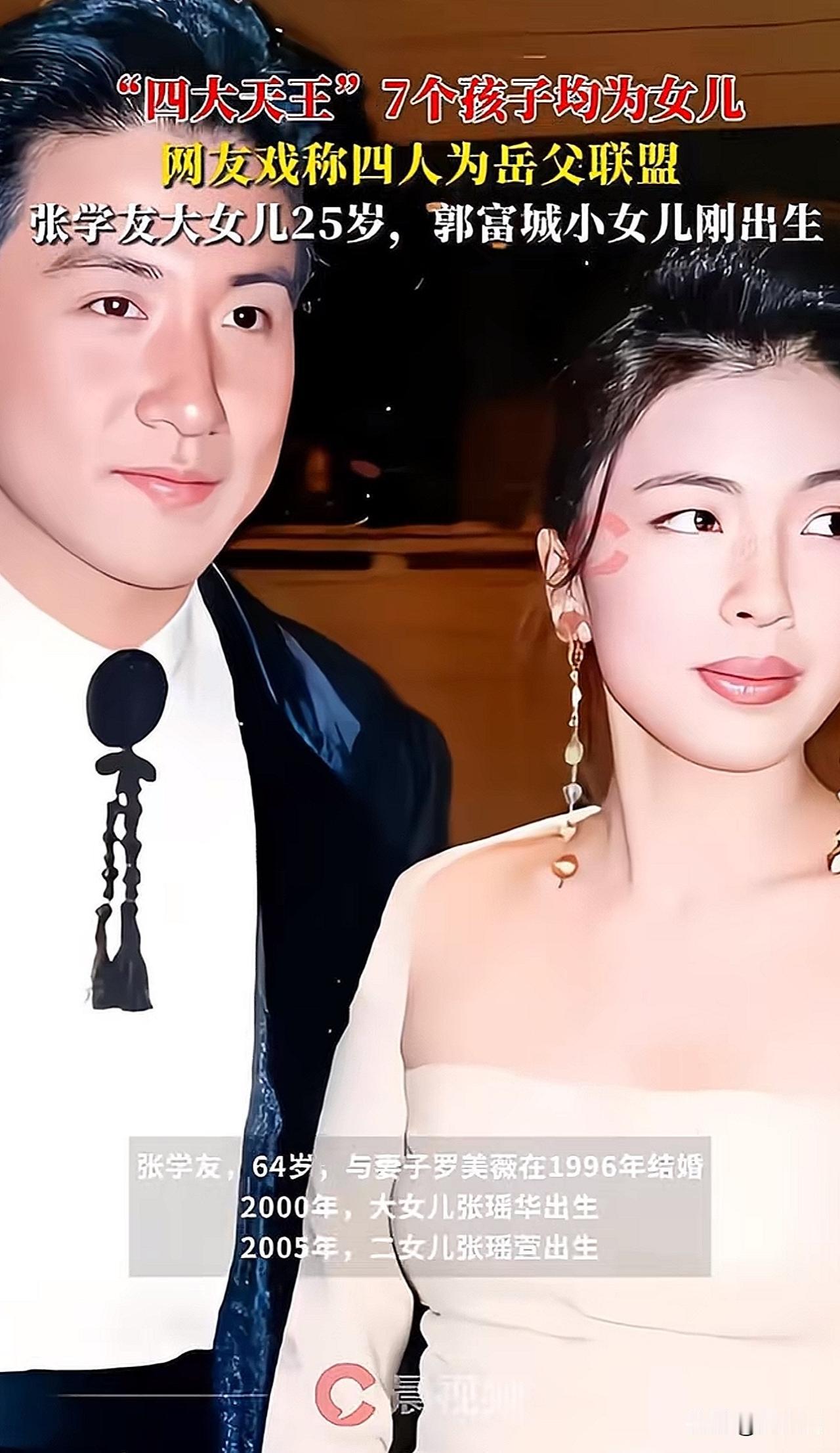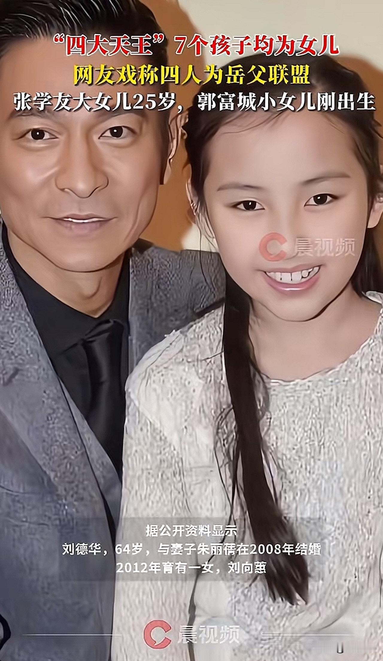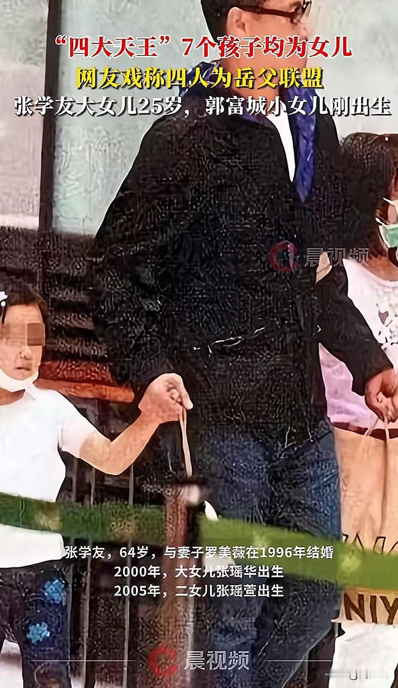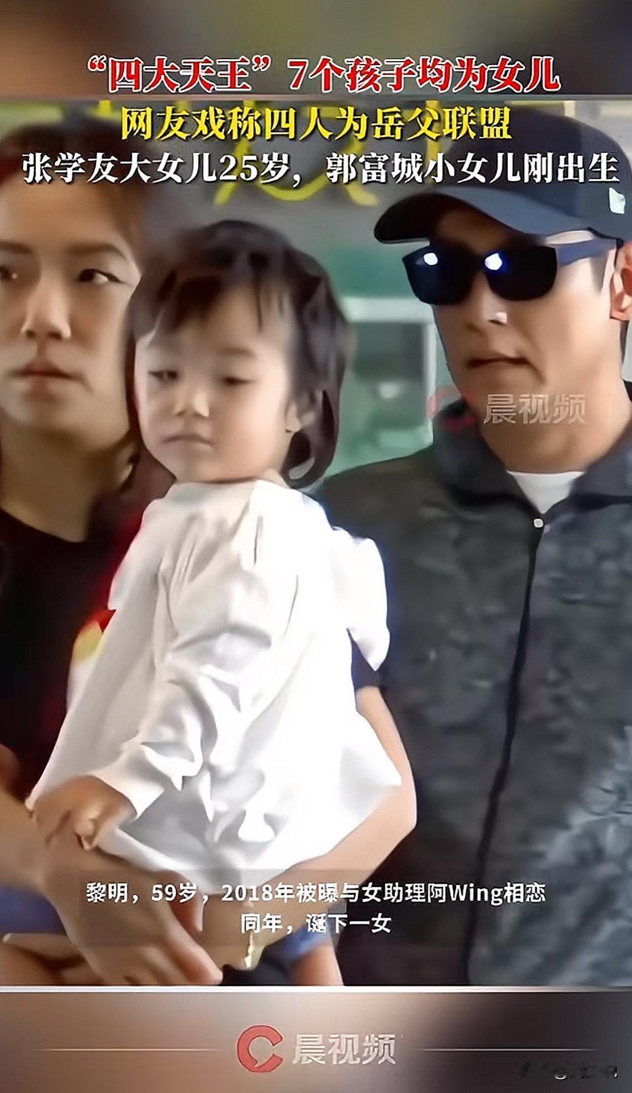 “网友太有才了!戏称香港四大天王为岳父联盟’”!近日,60岁的郭富城官宣三胎得女,消息一出便引发热议。 这一官宣让香港四大天王的“子女版图”彻底清晰,刘德华、郭富城、张学友、黎明四人的孩子均为女儿,众多网友戏称四人为“岳父联盟”。 此事迅速冲上热搜,网友们纷纷调侃:“这岳父联盟”阵容也太豪华了,谁能集齐四位岳父的签名?” 也有网友说,“原来天王的统一归宿是当岳父,基因也太整齐了!” 还有网友调侃道,“以后女婿见面得先比一比谁的岳父更传奇吧!” 看完这事,周少想说四大天王承载了几代人的青春记忆,而“全是女儿”确实非常的巧。 网友的“岳父联盟”戏称,既是对这一有趣现象的调侃,也藏着对天王们卸下光环、回归家庭的温情关注。这种兼具情怀与趣味的话题,自然能戳中大众的讨论点,只能说网友们太有才了。 对于网友戏称香港四大天王为“岳父联盟”,大家怎么看呢?#寻美三湘# #长沙新朋友#