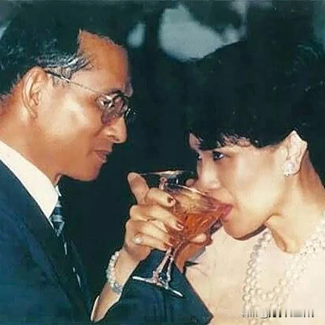 诗丽吉王后和丈夫恩爱瞬间,喝交杯酒,搂抱着快亲上了。那个年代的人,即使当众秀恩爱也不会过分,都是点到为止。