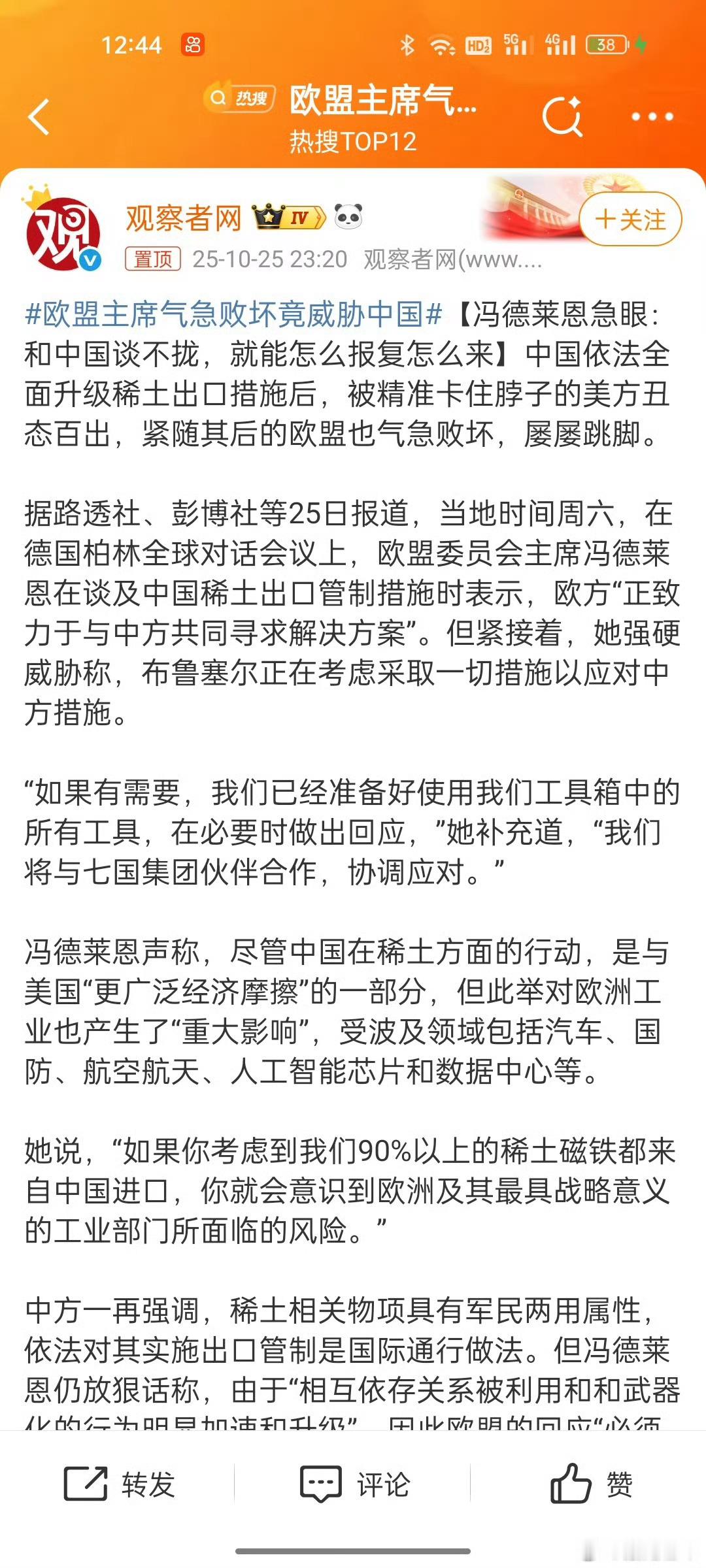 欧盟主席气急败坏竟威胁中国吓唬谁呢?[doge]这是求人办事儿的态度吗?几斤几两