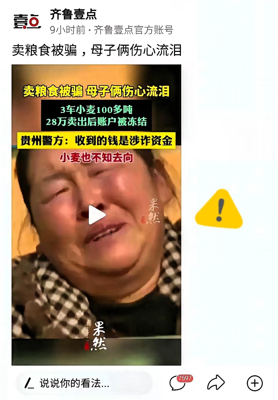 农民卖粮拿的钱 本就是汗珠子摔八瓣换来的合法收入 凭啥要被冻结? 诈片分子买的小麦是他的个人财产,按规矩该没收就没收,可农民的卖粮款是干净钱,是过日子的本钱,跟诈片赃款根本不是一回事。总不能因为买家犯了错,就把卖家的合法收入给卡了吧? 农民一年到头就指望这点粮食钱,供孩子上学、给老人看病,哪一样离得开?冻结他们的钱,相当于断了生计,这实在不合理! 治理诈骗要抓源头,该罚的是骗子,该保的是老百姓的合法权益! 你们觉得,怎么才能既严惩诈骗,又不委屈了这些辛苦种地的农民?