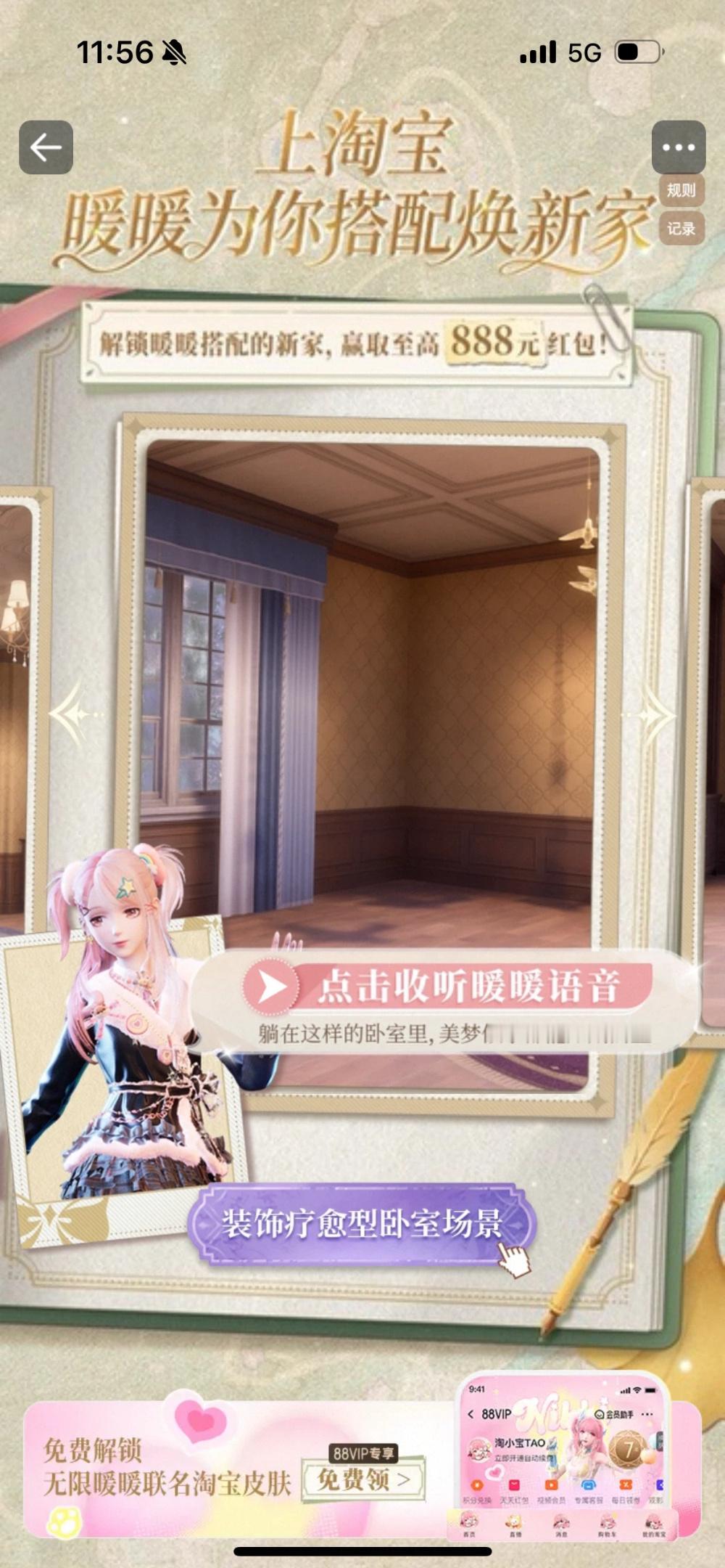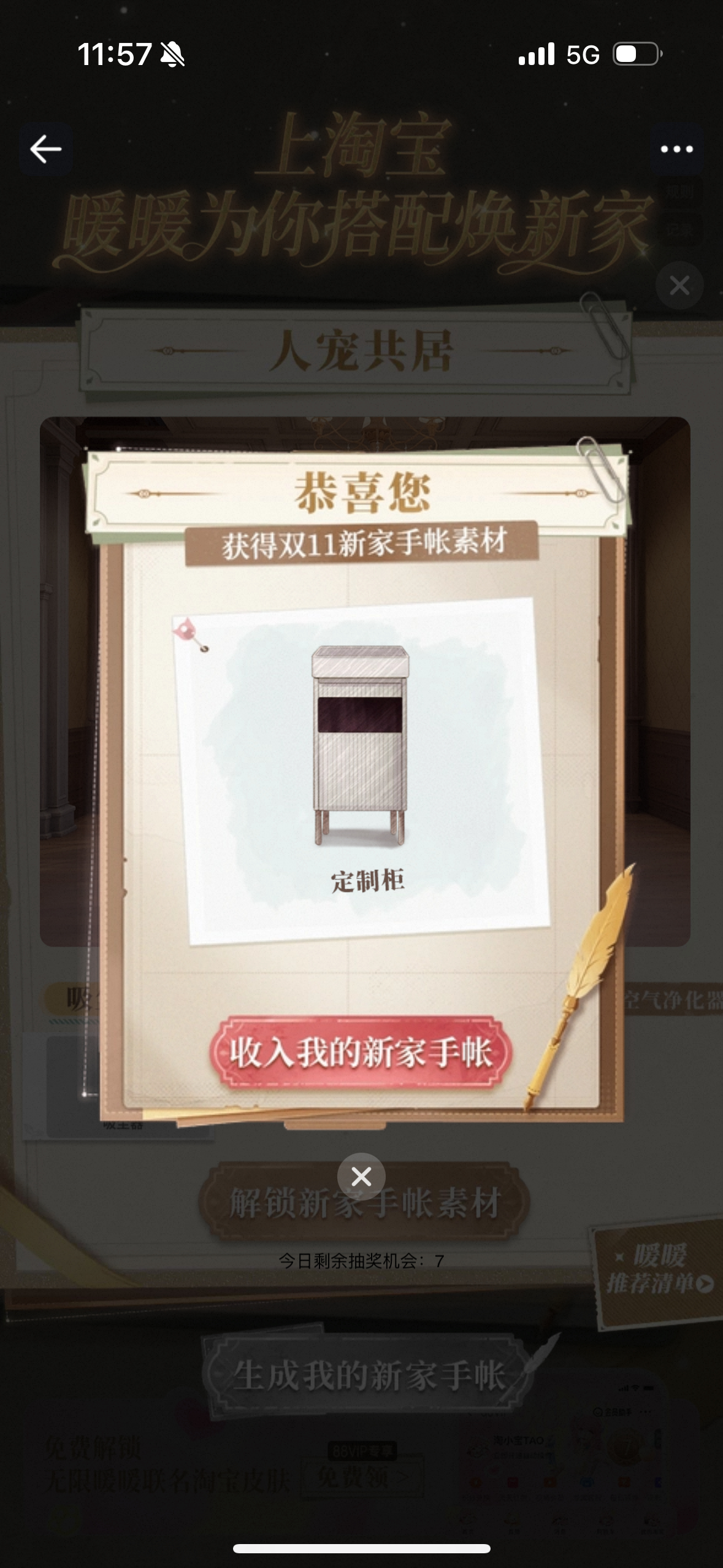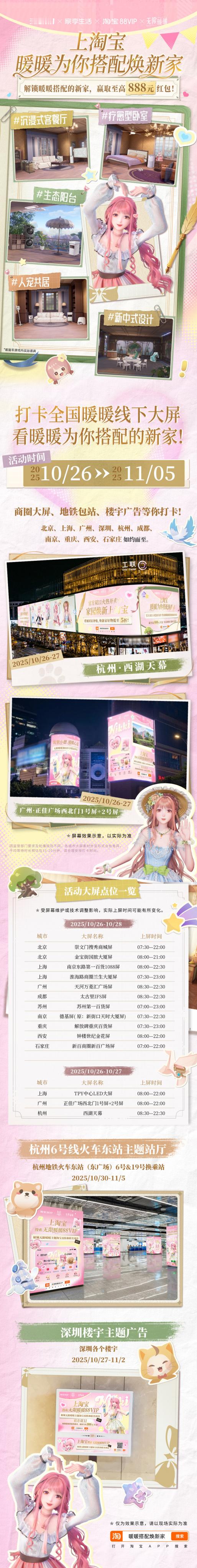 天猫无限暖暖玩无限暖暖的宝宝注意注意!天猫x无限暖暖联动来了,暖暖成为了天猫双11家园搭配师!即日起至11月14日,收集5个手帐素材,就能无限暖暖抽游戏道具兑换码和至高888元红包,快打开淘宝搜索【暖暖搭配焕新家】,解锁暖暖搭配的新家场景吧!特别提醒!别忘领无限暖暖主题淘宝皮肤!