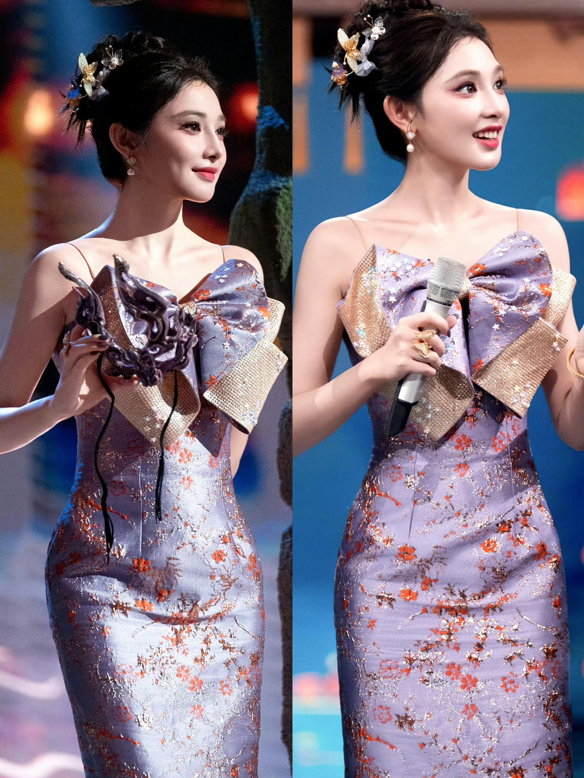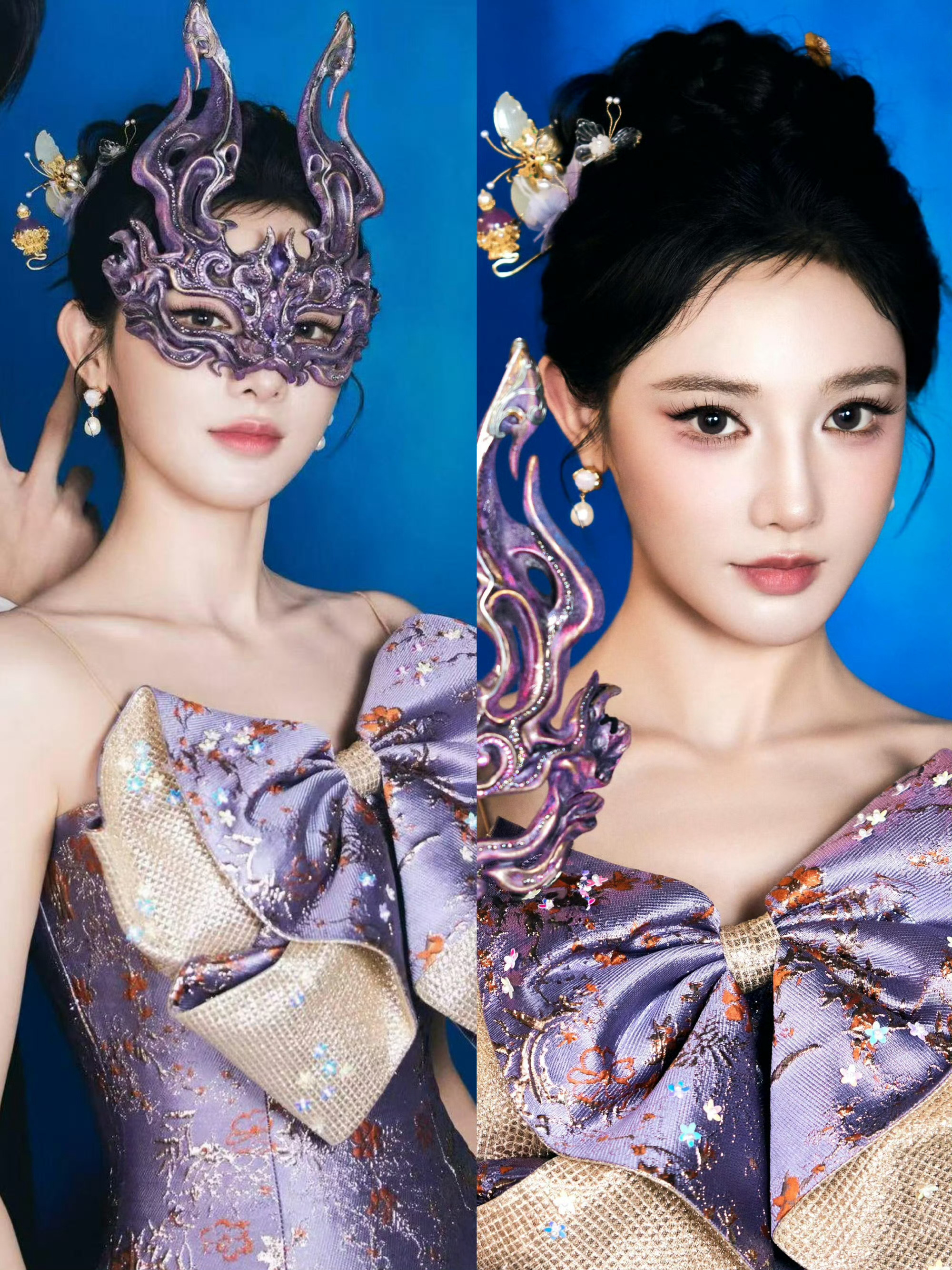 彭小苒近日妆造全是紫色 她让紫色成为中式美学的活名片!传统紫色象征尊贵,搭配现代剪裁与民俗面具,从海外剧迷到国内观众,都被这份独特美感征服!