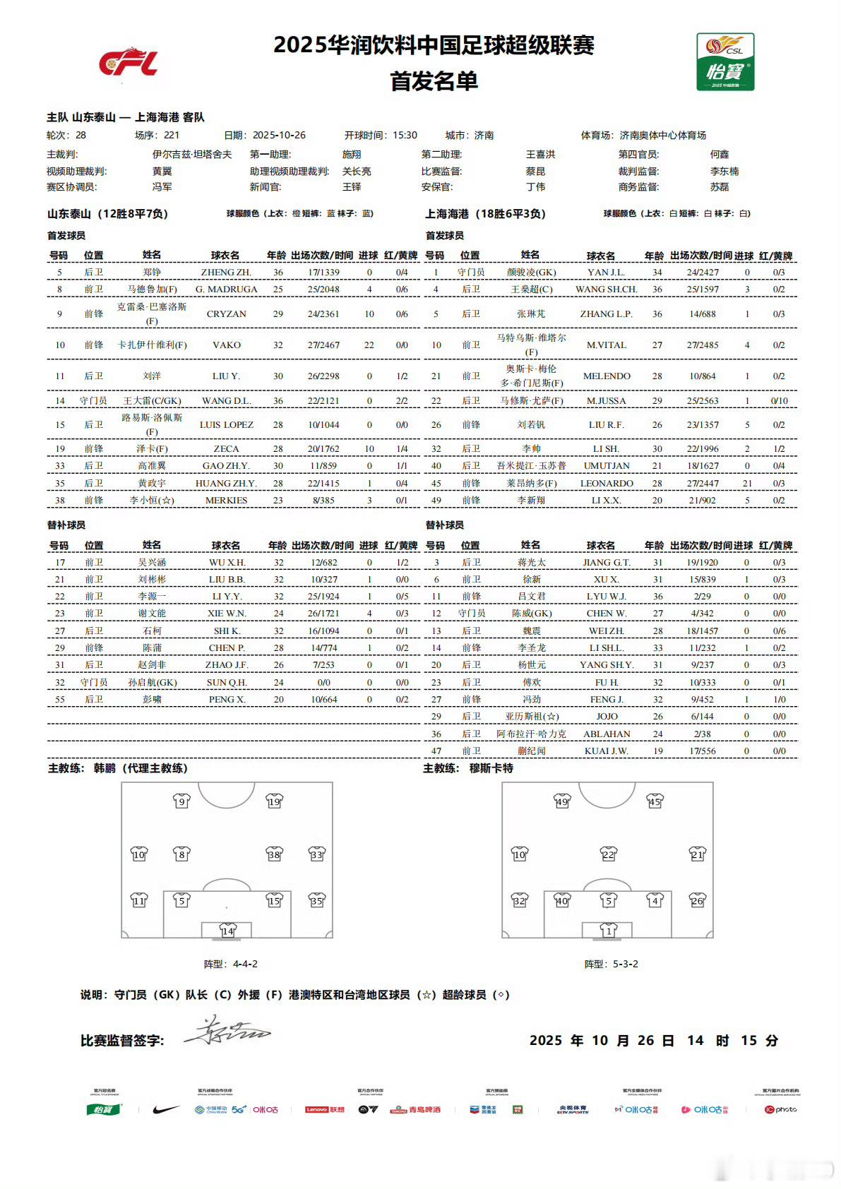 今天的联赛可就更热闹喽~10-26 15:30 山东泰山vs上海海港10-26