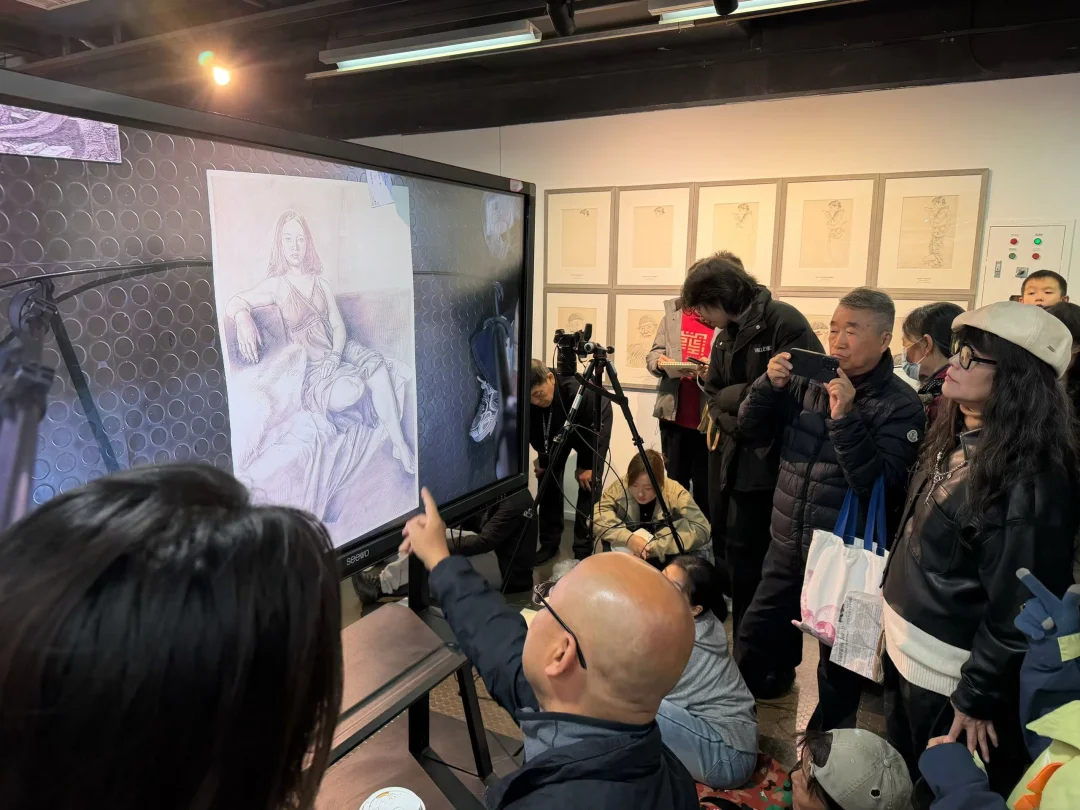 配合天津美院“百年素描”的展览活动, 在天津美院美术馆五楼我的教学展区, 我先后举办了两场公益教学活动, 在我的个案展区, 有我的230幅素描、6件雕塑、2幅巨型油画, 距离展览结束还有二十天。
