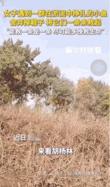 “这才是真正意义的放生”。近日,新疆。女子去看胡杨林的途中,在路边的小泥坑里发现了好多的鱼。 这个泥坑里面都是淤泥,没有水,这些鱼在泥坑里不知待了多久了,有的被淤泥覆盖,有的在挣扎着乱蹦,都奄奄一息了。 女子看到后,就停下来了。她也顾不上看胡杨林了,说旁边就是河塘,她要救救这些可怜的小鱼,把它们放生到河里。 只见她在路边捡了一个鞋盒子,顾不上踩了一脚的泥,俯身就开始往盒子里捡鱼。 她一边捡一边感慨这些鱼生命力的顽强,说能救多少算多少。 没一会儿她就捡了一盒子的鱼,然后把它们放进了不远处的河里。 被救出来的鱼放水里后,不一会儿就游起来了。 看到又重新焕发生机的鱼,女子兴奋的说,看,它们活了。它们一会儿就都缓过来了。 对于这些鱼来说,真的是绝处逢生了。 就像我们人也一样,有时候看似没有希望了,但坚持下去,就有可能发生奇迹。