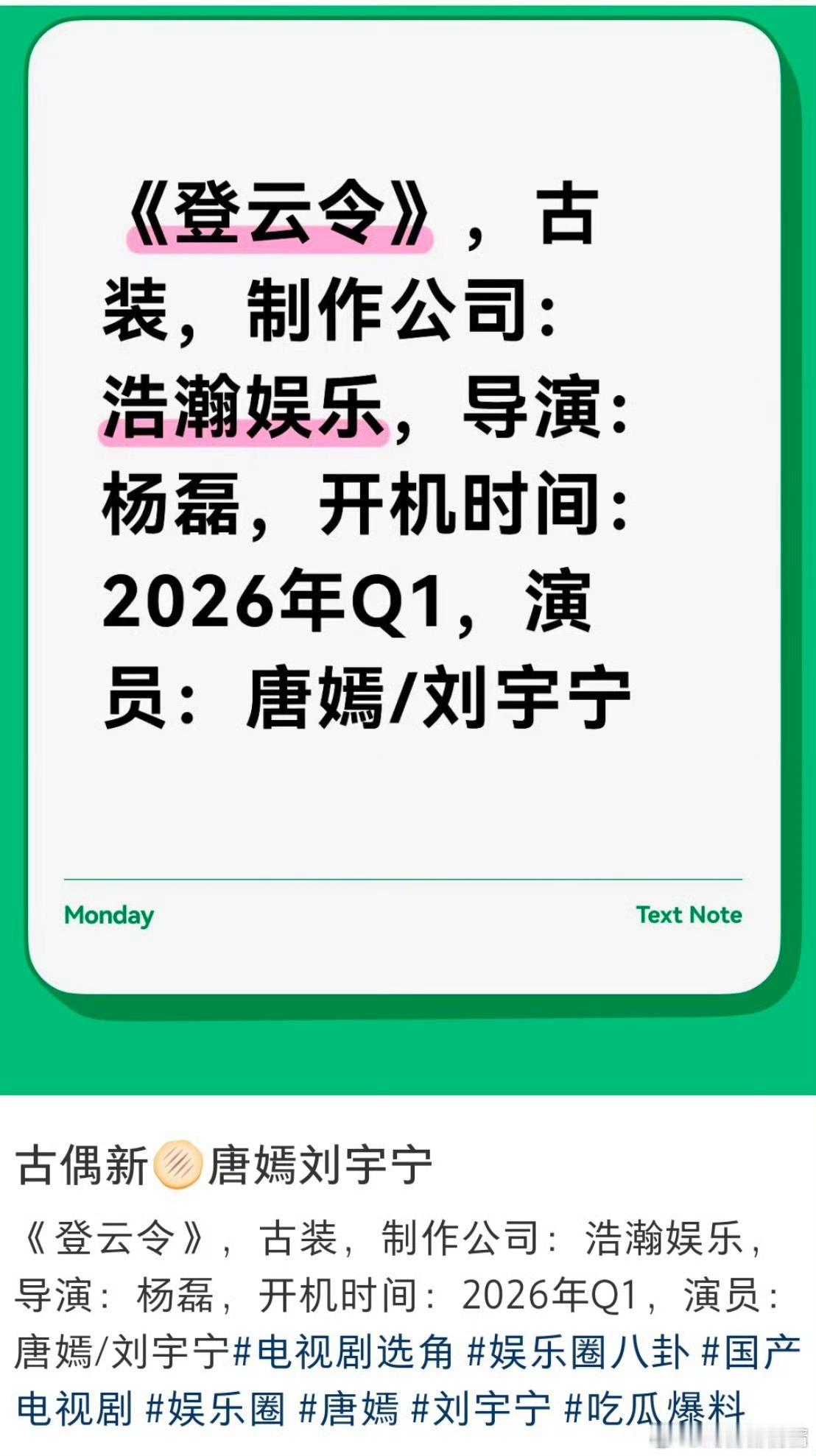 🍉李沁、邓孝慈《云初令》,唐嫣、刘宇宁《登云令》,现在的古偶名字都差不多,听说