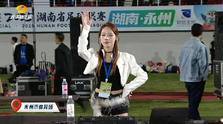 湘超比苏超玩的还嗨啊,球场秒变蹦迪场馆!话说这喊麦的DJ小姐姐可真不赖,湘妹子颜