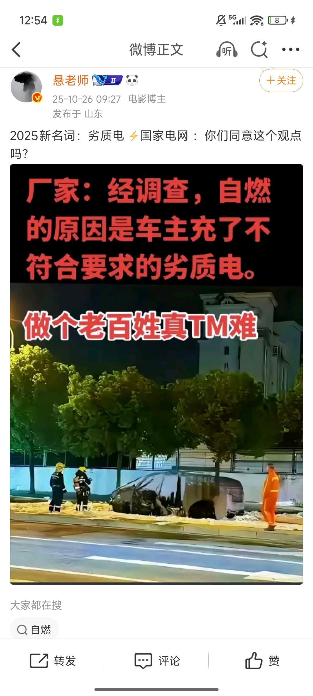 不是…电车着火是因为大概率充了“劣质电”?[疑问][费解]?这是在玩梗还是当真的啊?螺旋震撼我。