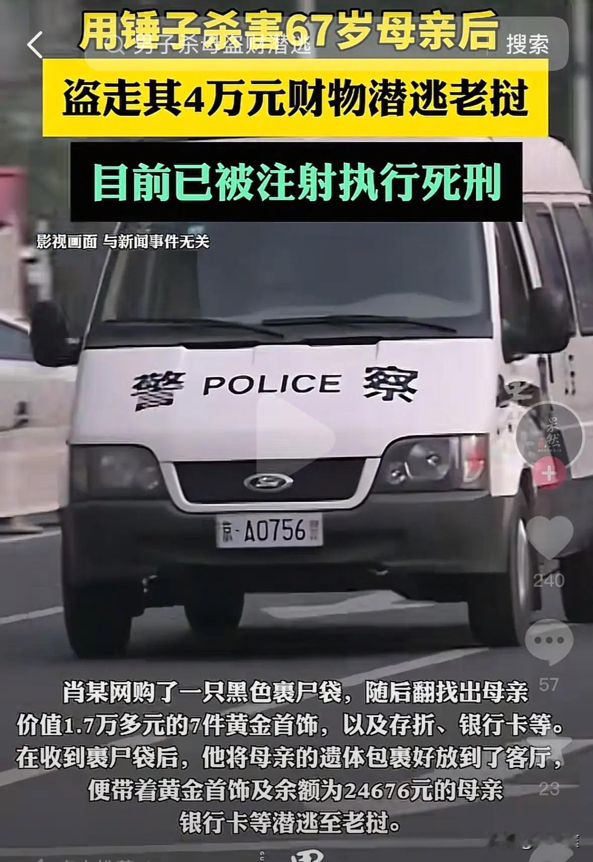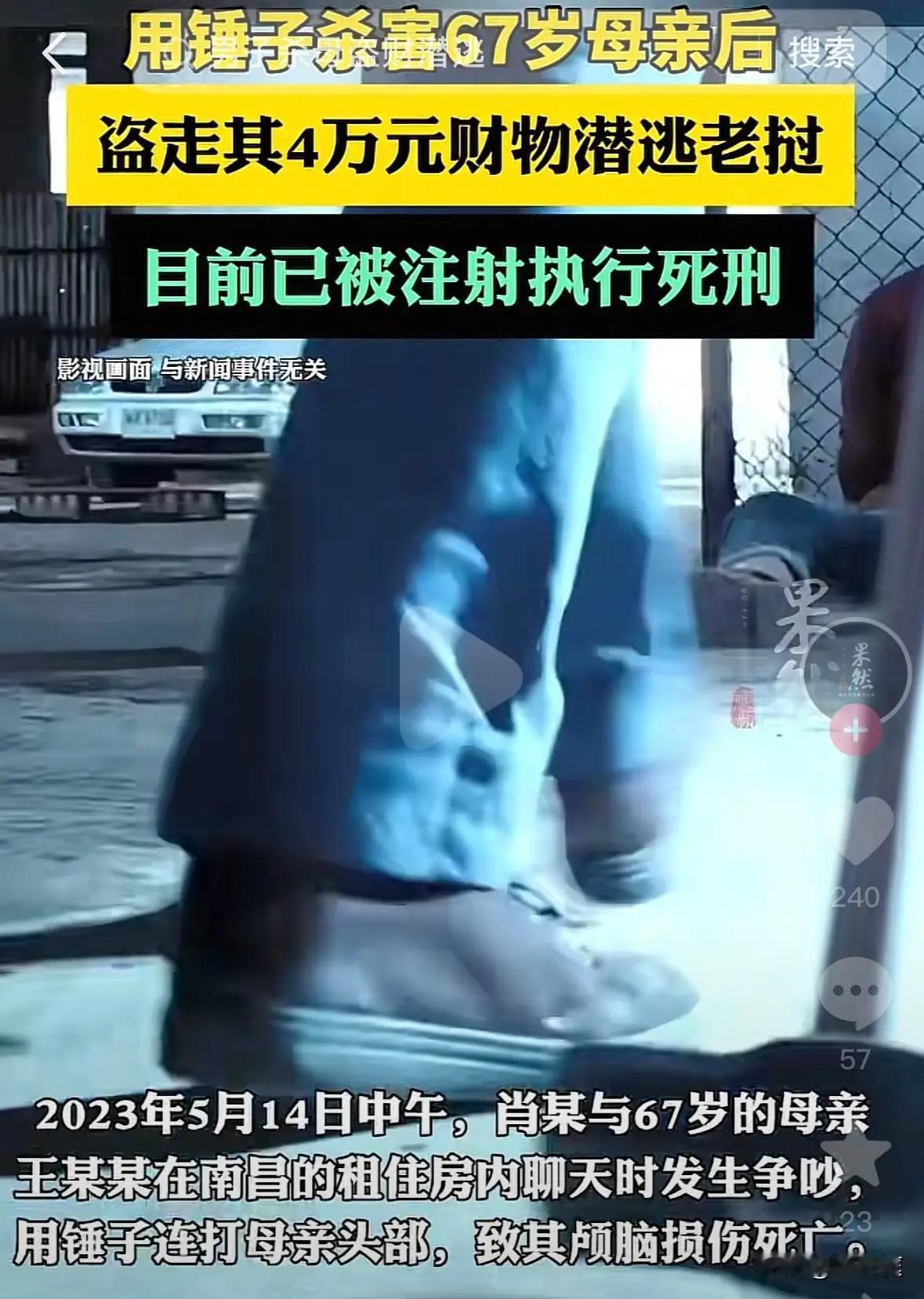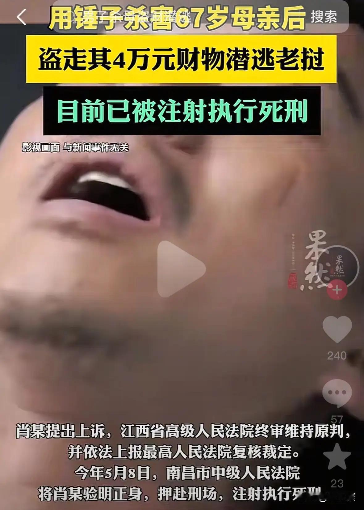 男子杀害67岁母亲被执行死刑 以下是这起男子杀害67岁母亲案件的详情:犯罪嫌疑人肖某因人生不顺归咎母亲致关系不睦,2023年5月14日用锤子打死母亲,盗走财物后潜逃老挝。法院判其死刑并处罚金,2025年5月8日执行。 在这个充满温情与责任的社会中,家庭本应是每个人心灵的港湾。然而,现实中却时常出现令人扼腕叹息的悲剧。今天我们讲述的,是一宗令人震惊的案件:一名男子因人生的不顺,将所有的愤怒和怨恨发泄在了年迈的母亲身上,最终酿成无法挽回的悲剧。 这起案件的发生,让我们不得不深思:家庭关系的裂痕究竟从何而起?一个本应彼此相扶、共度风雨的亲情,为何会变成刀光血影?肖某的行为令人愤怒,也让人痛心。有人说,孝顺是中华民族的传统美德,但在现实中,孝顺的缺失、沟通的断裂,是否也在潜移默化地侵蚀着家庭的温暖?肖某归咎母亲,似乎在诉说着某种心结,但真相或许更为复杂——是生活的压力,还是心灵的孤独,让他逐渐迷失了自己。 值得关注的是,法院的判决——死刑执行,彰显了法律对生命的尊重与底线的坚守。有人会说:“如此残忍的案件,判死刑又是否过于严厉?”但从另一个角度看,法律不仅是惩罚,更是一种警示:家庭暴力、亲情破裂,绝不能成为社会的隐患。每个人都应明白,伤害亲人,就是伤害自己最深的根基。 这起案件也让我们反思:我们身边的家庭关系是否也存在隐形的裂痕?我们是否在忙碌中忽略了父母的感受?孝顺,不仅仅是口头的承诺,更是日常的陪伴和理解。我们每个人都可能成为家庭的“守门人”,守护那份难得的温暖。 当然,法律的惩罚只是最后的底线,真正的预防在于社会的关怀、家庭的沟通和个人的修养。我们不能让悲剧再次上演,更不能让爱变成仇恨的火种。每一位父母都值得被尊重,每一份亲情都值得被呵护。 当我们看到这样的新闻时,难免会愤怒、惋惜,但更应思考:我们能做些什么?或许,从关心身边的每一个家人开始,从用心倾听每一次的心声起,才能真正减少类似的悲剧发生。让我们共同努力,让爱成为家庭最坚实的堡垒,让温暖驱散阴影,让生命在理解与包容中绽放光彩。对此,你有什么看法,请在评论区交流超速致死母亲案 杀亲妈