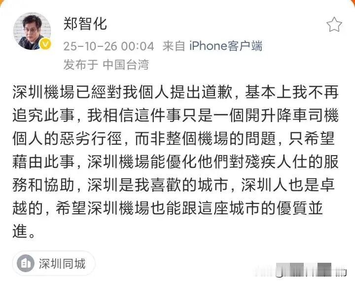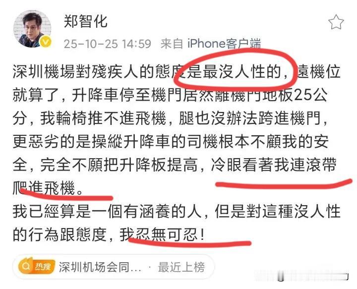 关于郑智化坐飞机的事儿现在出现了反转,因为机场那边拿出来了当时郑登机的视频,全程都有地勤人员把他送上飞机的,不知道郑智化为什么还那么大脾气
