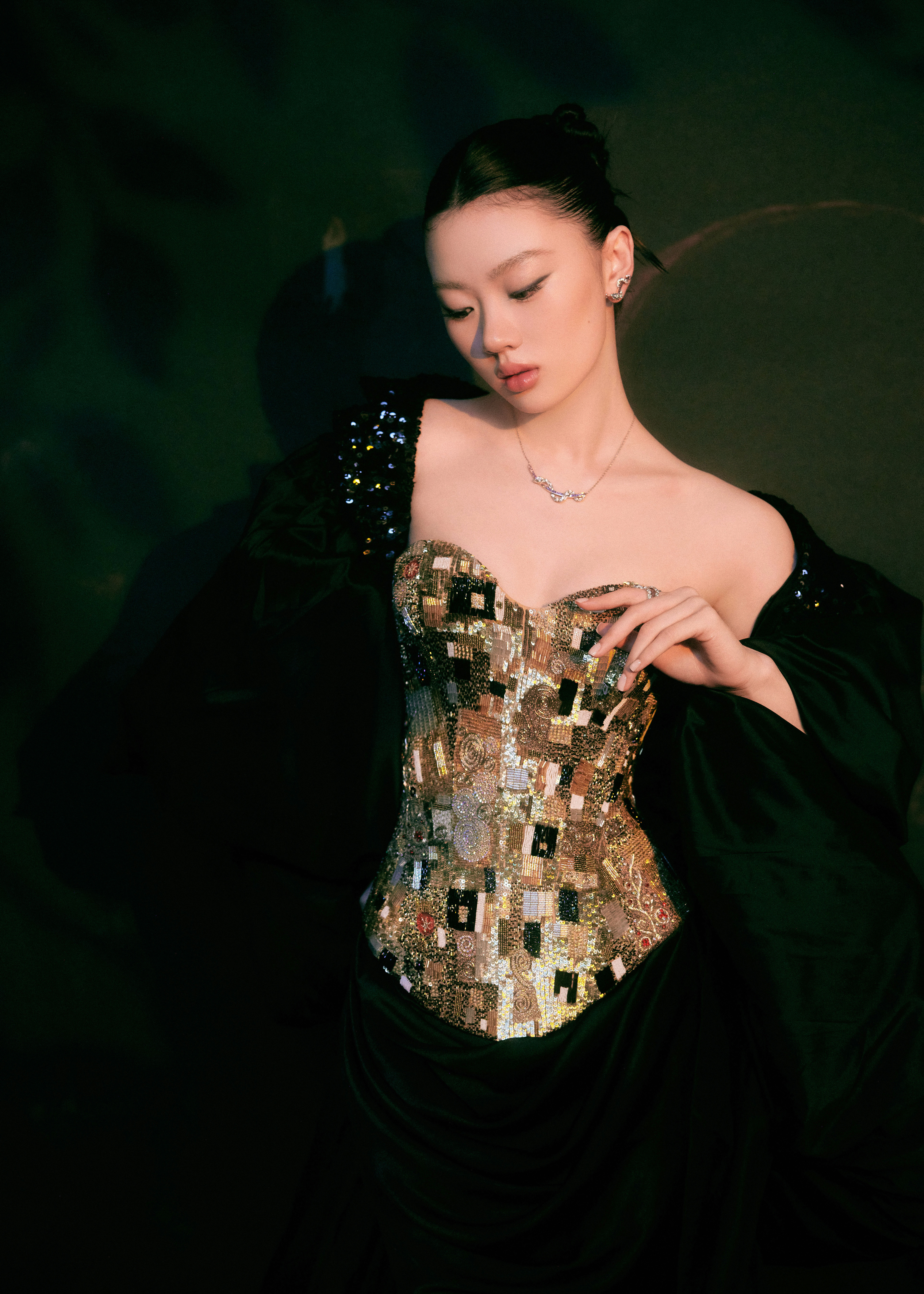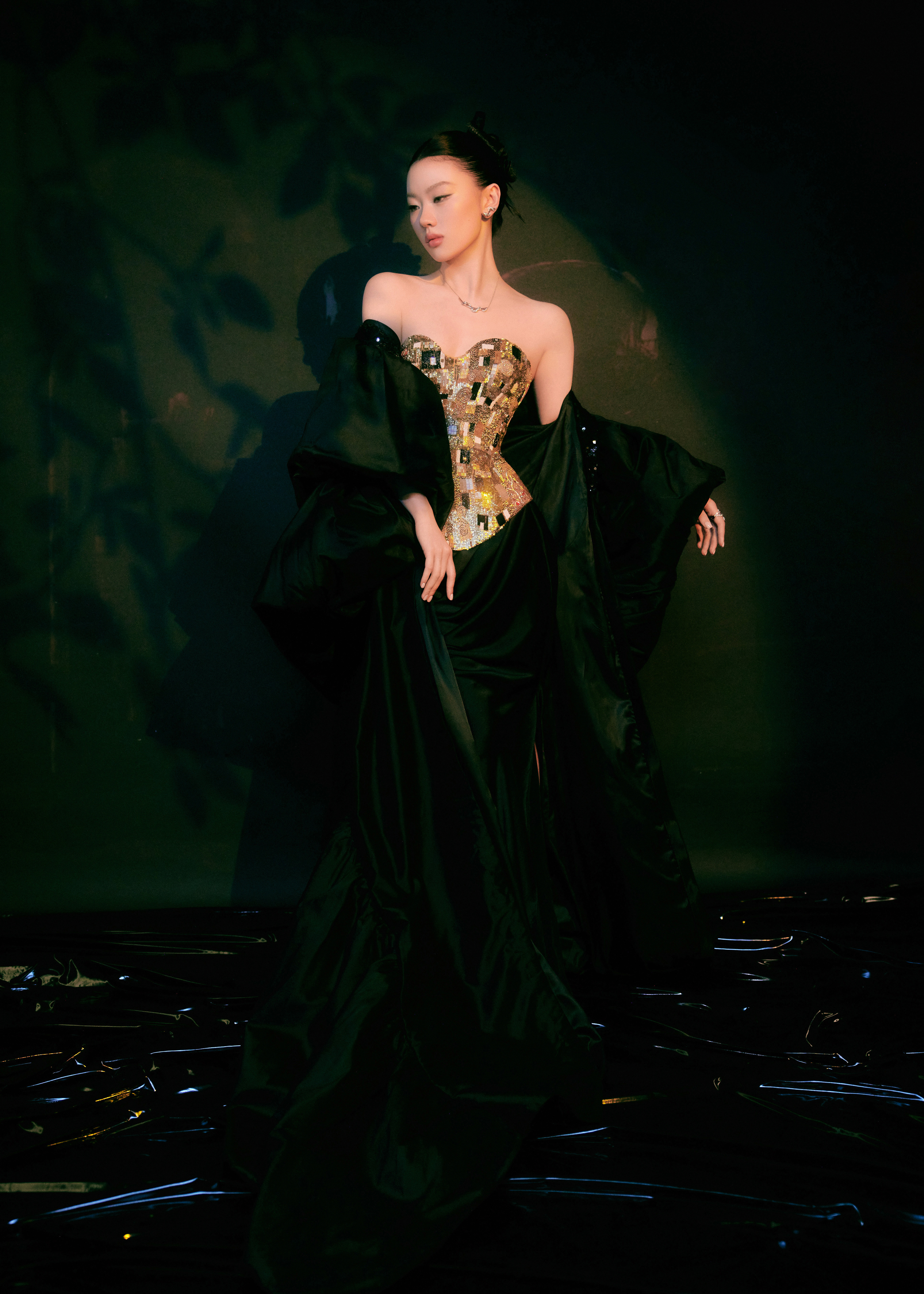 你纯今晚也有来吼 ,以一身 Rahul Mishra 2025 秋冬高级定制系列礼服亮相王者荣耀共创之夜 ,金箔刺绣与黑色缎面交织 ,来自个人第七套 RM 高定的演绎 ,经典黑金搭配尽显 Diva 气场与风范 ,美 !🖤