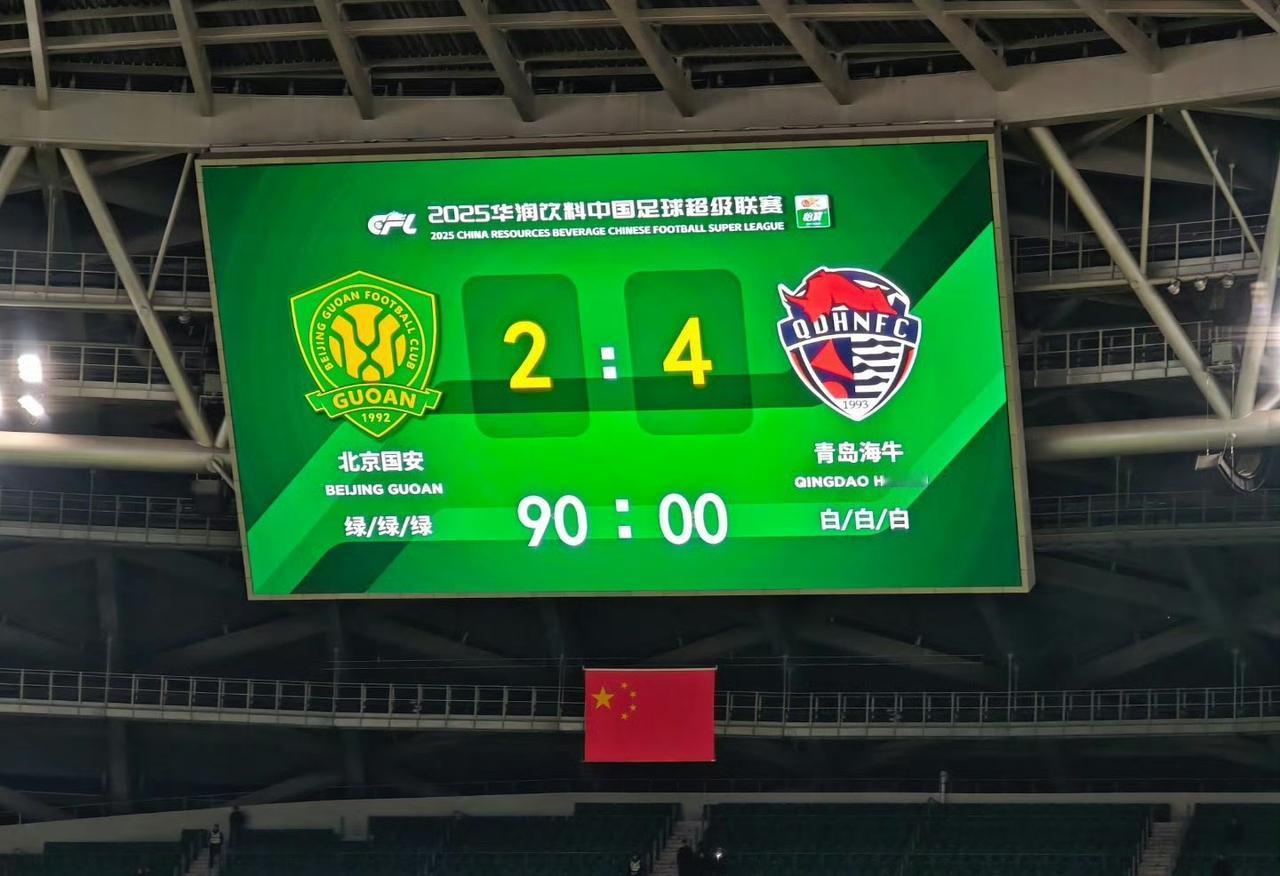 国安主场崩盘,工体响起倒戈声! 10月26日晚工体真是让人看得心塞,北京国安在2-1领先的大好局面下,最后12分钟被青岛海牛连灌三球逆转,硬生生把三分送了出去。 这场球一开始其实挺提气的,法比奥上半场就破门,把自己联赛进球数刷到22个,破了队史纪录。 等到第59分钟塞尔吉尼奥再进一球,2-1领先的时候,谁都以为稳了。 结果从第85分钟开始,全乱套了。萨里奇一脚侧身扫射扳平,补时阶段恩加德乌解围失误直接“助攻”对手,最后被萨里奇和席尔瓦连着捅了两刀,12分钟崩盘,比分定格在2-4。 球迷彻底吵翻了。补时丢球后,工体竟然响起给客队的掌声,死忠看台高喊“还我国安”。 王刚替补上场时满场嘘声,据说是因为他之前一些言论惹了众怒。更扎心的是上座率,官方通报只有18736人,刷新新工体启用后的最低纪录。赛前黄牛票打两折都卖不动,原来1080的VIP票四百多没人要,这场景多少年没见过了。 代理主帅拉米罗带队3场1平2负,赛后说“不是能力问题”,可换下进球功臣的调整确实让人看不懂。 中卫恩加德乌对最后三个丢球都有责任,被球迷骂上热搜。而青岛主帅李霄鹏赛后还帮国安说话,说周中踢亚冠太累,请球迷多宽容,这话听着暖心,可反而衬出国安俱乐部在赛程安排和体能管理上的问题。 从“永远争第一”到保级队提款机,国安这场输的不仅是积分,更是人心。最后两轮打长春和梅州,要是还这状态,保级圈都得抖三抖。 其实球迷要的不多,拼到底的态度比胜负更重要。希望这场惨败能敲醒管理层,别让工体那片绿色真的褪了色。