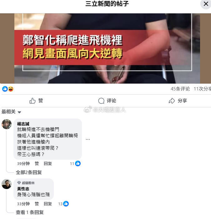 郑先生的“连滚带爬进飞机”事件,在岛内绿媒的下面,也是被繁体字骂的(图3图4)