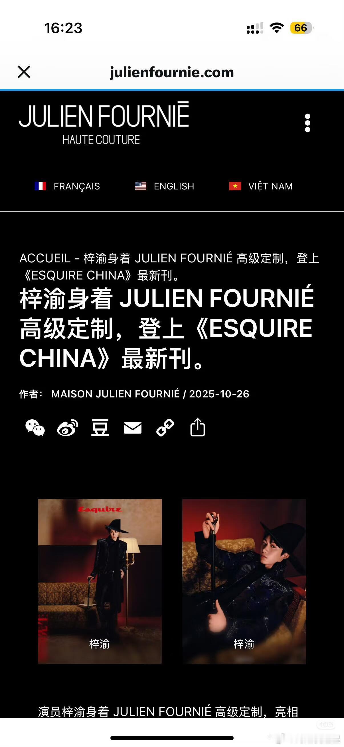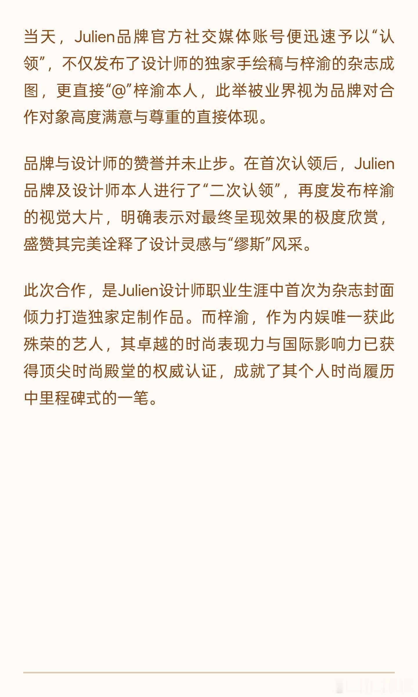梓渝获法国高定协会品牌Julien设计师独家定制创内娱时尚记录[赞][赞][赞]太争气了