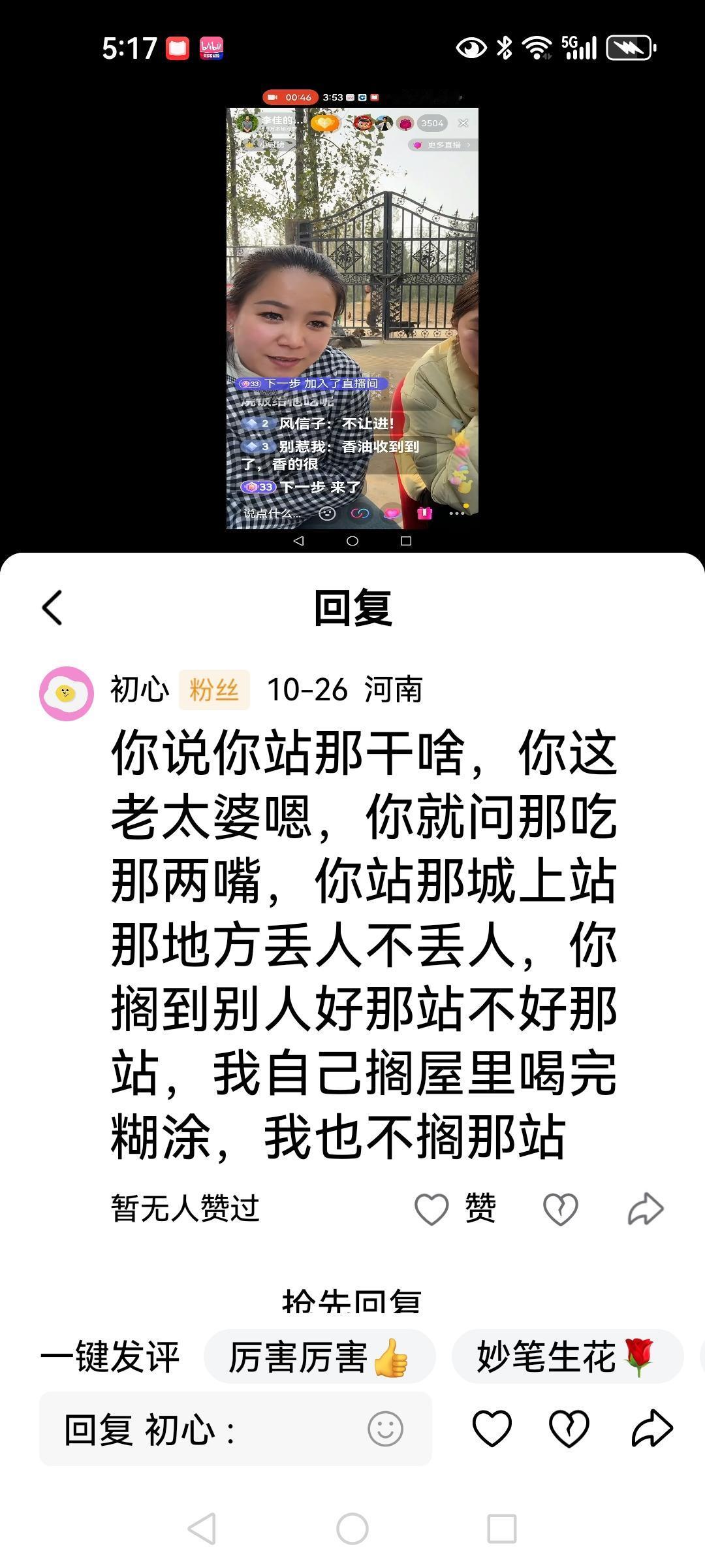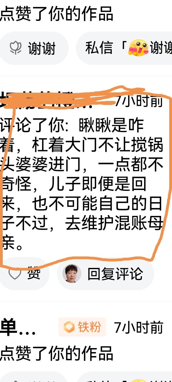 谁对谁错,谁是谁非大家评 看看大家是怎样评论老壳子的,有的说:懒的出奇,活的没脸没皮。 还有的说:瞅瞅是咋回事,锁着大门不让恶婆婆进门,一点也不奇怪,就算是儿子回来,也不能自己的日子不过,维护你这个混账母亲。 每次直播她都抢着吃,丢人不丢人,不直播还跟孩子们抢吃的,真是万里挑一。 谁能供养着一个长期整天来牌,啥活不干,而且天天找事的婆婆。