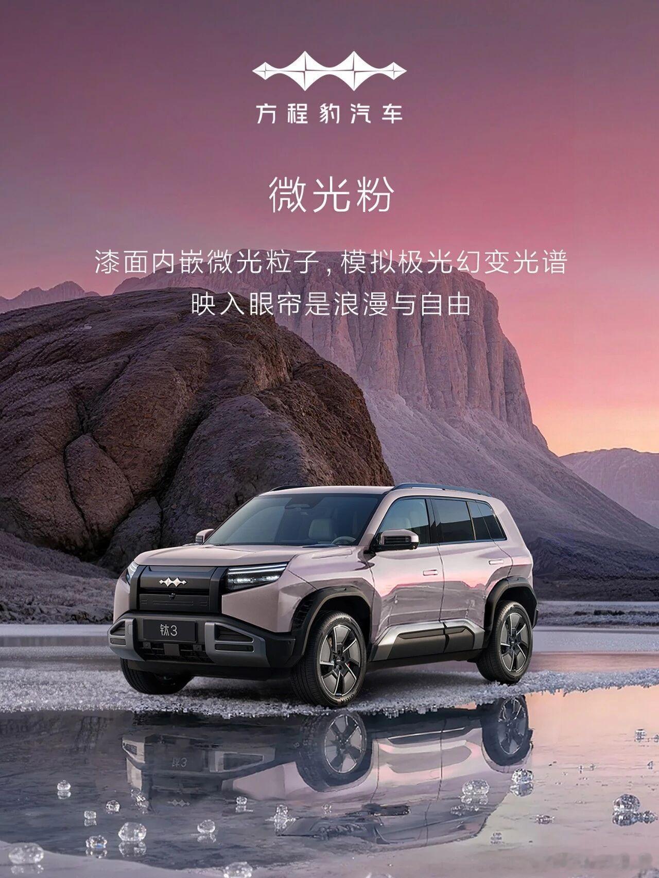 方程豹钛3,6大车色随心选,全新潮色「微光粉」、「冰晶蓝」上新,10月26日 17:30 全网直播!