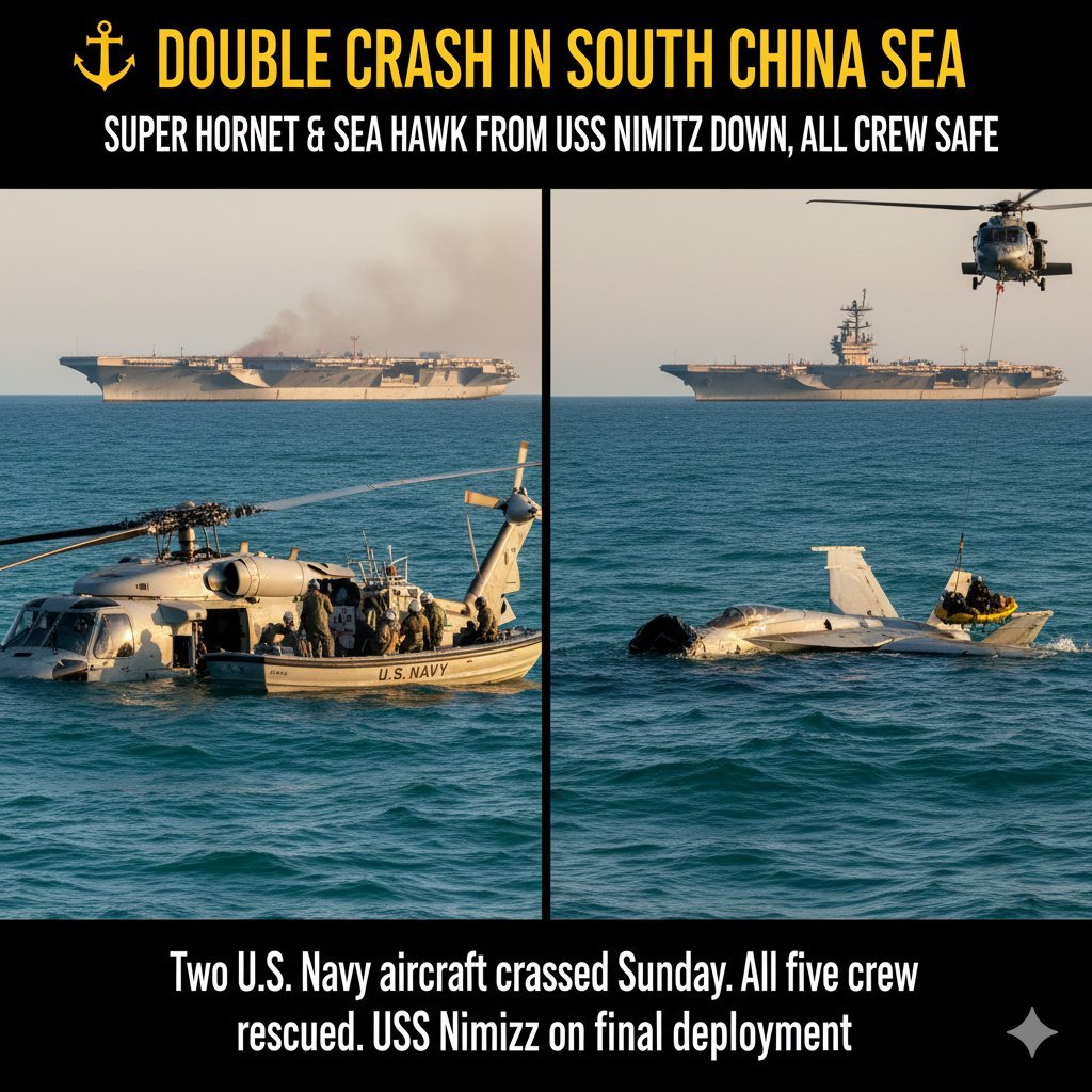 “尼米兹”号航母的两架美国海军飞机在南中国海接连失事,事故发生时间仅相隔几分钟。