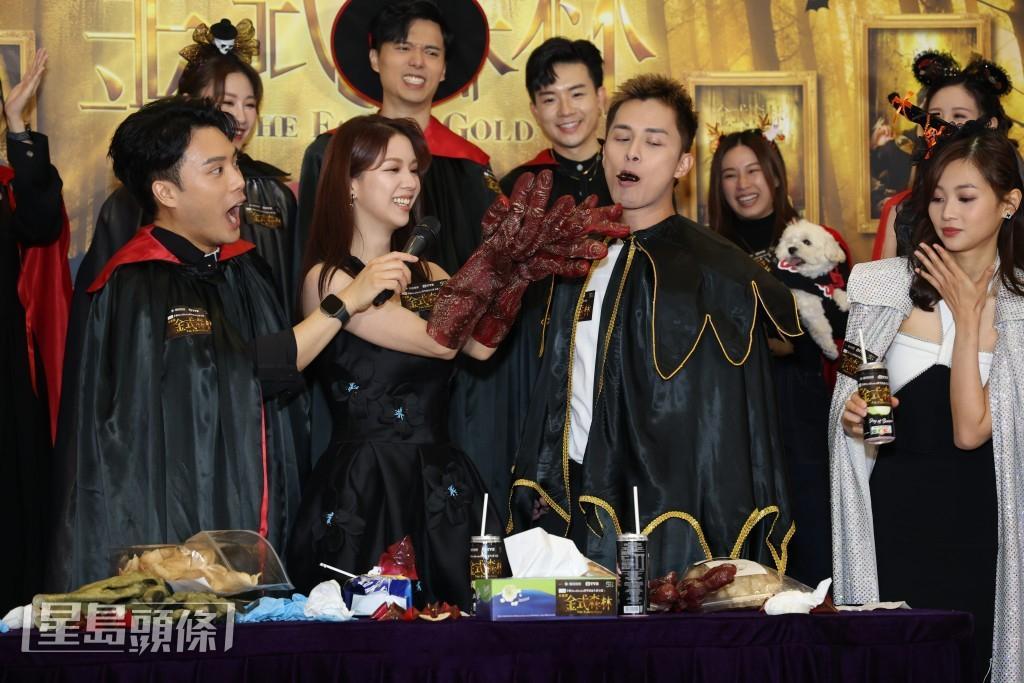 郭晋安、陈晓华、罗兰、罗子溢及何广沛等今日(26日)出席剧集《金式森林》宣传活动,众人以万圣节造型现身,在活动中玩喂食和蒙眼认人游戏,而监制林志华透露《金式森林》早前成为9点半黄金时段剧集收视冠军。