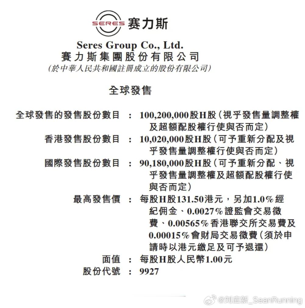 赛力斯集团拟在香港上市,每股最高发行价 131.50 港元。赛力斯港股上市将成为2025年亚洲科技板块最大IPO之一,若成功以131.50港元定价,赛力斯港股市值将达约2150亿港元,与蔚来、理想等新势力处于同一梯队。妥妥的小厂逆袭呀!赛力斯