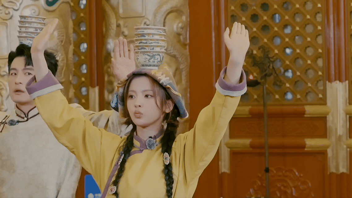 最适合杨超越的舞蹈出现了 杨超越跳蒙古族顶碗舞的状态太绝!别人还在找舞蹈节奏时,她已经能把顶碗和舞蹈动作融合,从脚步踏点到手部动作都很协调,头顶的碗稳得没话说,适配度拉满。