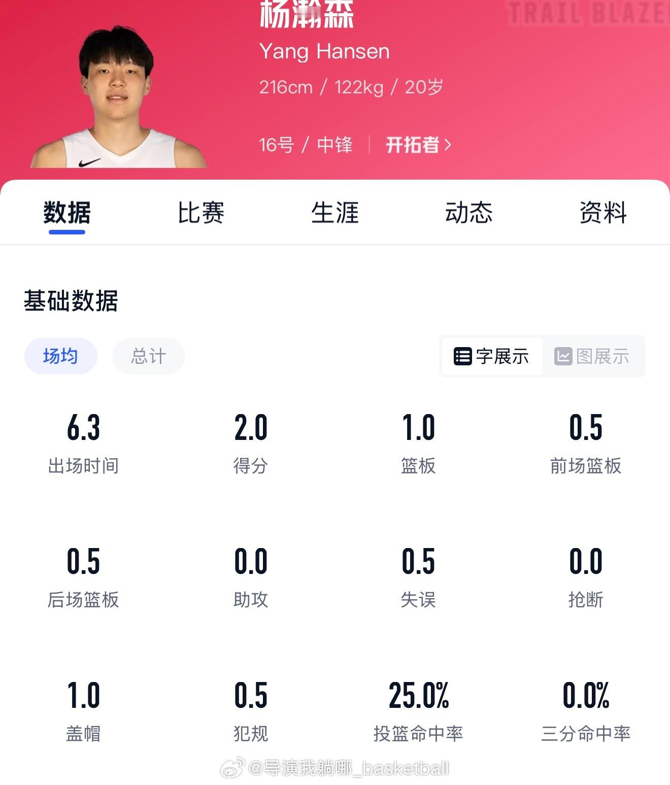 开赛前三场场均6.3分钟对于一个16号新秀来说时间还是偏少,开拓者现在也处于比较拧巴的阶段,彻底摆烂还不甘心,目前阵容想要打出成绩也非常困难,我预测他们目前的想法应该是让现有的交易筹码打出表现在赛季中期寻求一些交易,赛季后半阶段再开始给杨瀚森这样的新秀大把机会
