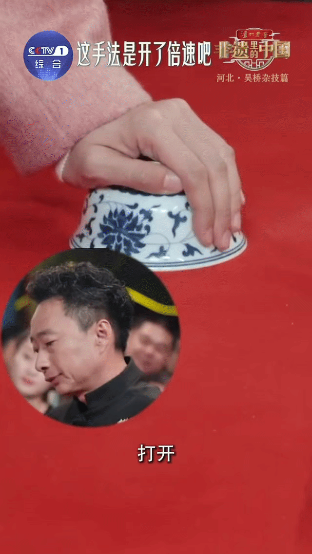 龙洋主持最疑惑的2分钟 沧州吴桥“三仙归洞”让龙洋迷糊全程!非遗杂技手速快到看不清,球明明在左碗,一揭就窜右边,师傅手法像开倍速,别说龙洋疑惑这两分钟,观众也摸不着头脑!