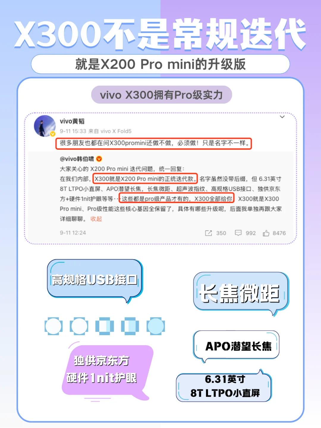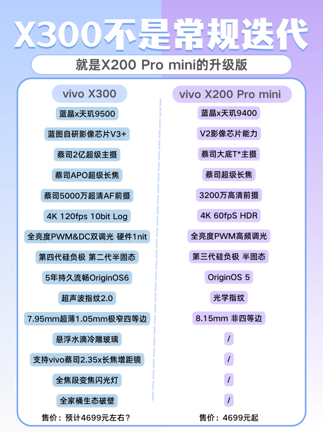 各位,这次信息量巨大:即将发布的vivo X300,本质上就是上代X200 Pro mini的终极进化版,官方内部默认它是“X300 Pro mini”!我猜X300价格应该是4699起步