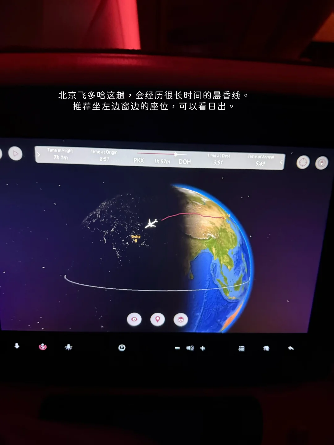 ✅北京飞多哈这趟这次▶️左边窗边的座位可以看到好美的晨昏线和日出。