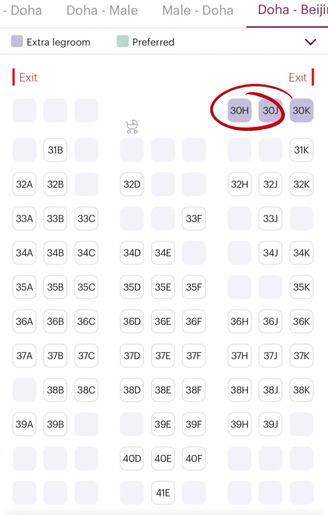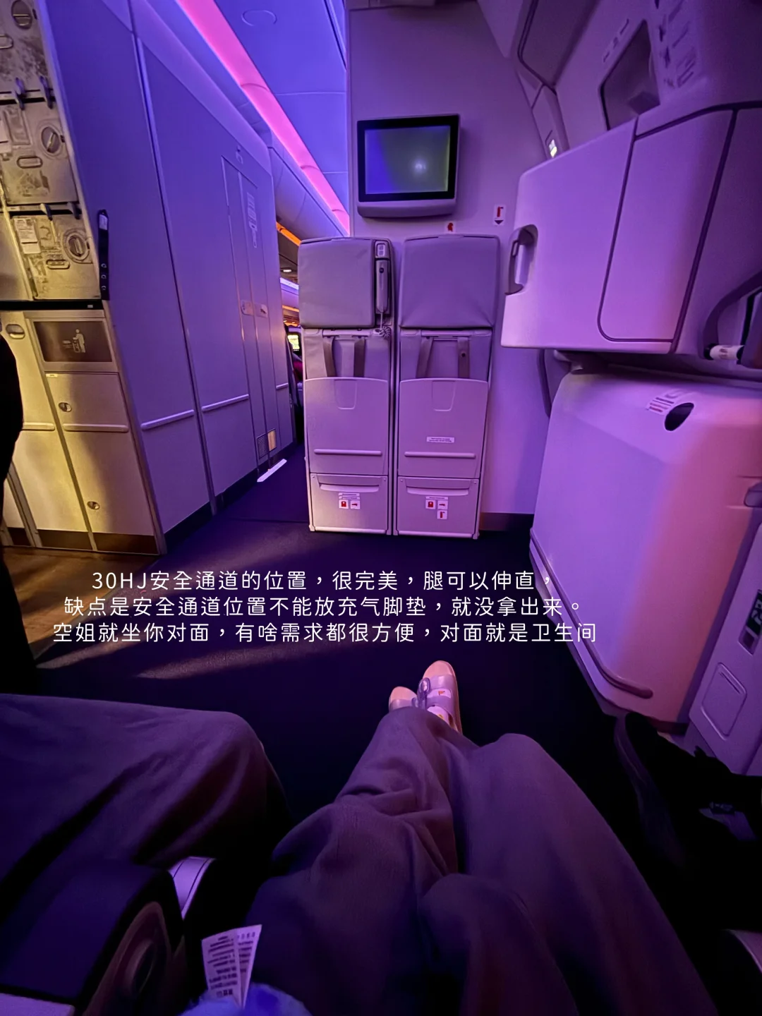 回程这趟选了30HJ安全通道的位置✅很完美。❌别选30K,靠安全门位置很小。优点:这边没有第一排婴儿的哭声,腿也可以伸直,一上飞机就带着耳塞眼罩一直睡,中途被空姐晃醒,看着你在睡也会叫醒你吃[笑哭R]半夜上飞机都要喊你吃饭。