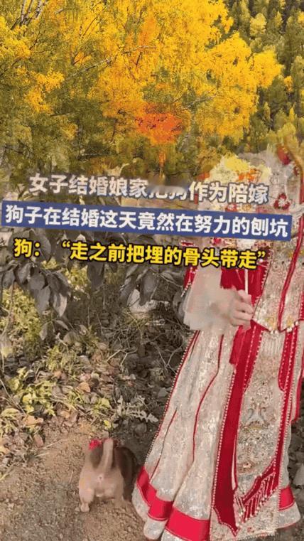 “笑不活了!”江苏,一女子出嫁时娘家把狗狗作为陪嫁,没想到结婚当天它在一处地面努力刨坑,走之前要把自己埋的骨头全部带走,网友:你有陪嫁,狗狗也有“陪嫁”![耶][耶] 头戴大红花的土狗忙着刨坑取骨头,把自己的“珍藏”当陪嫁,瞬间让严肃的仪式多了份鲜活的可爱。围观亲友的笑声里,藏着大家对这份“特殊陪嫁”的偏爱——比起金银首饰,狗狗带着骨头奔赴新家的模样,更显真挚动人。 动物行为研究者说,这是犬类的天性,可在这场婚礼里,这份“天性”早被赋予了不一样的意义。狗狗没懂什么是“出嫁”,却清楚要跟着主人去新地方,所以要带上自己最宝贝的骨头,这份“我要和你一起,还要带上我的全部”的纯粹,恰恰戳中了人心最软的地方。 网友调侃它带的是“骨头银行”“婚前财产”,玩笑背后满是对这份情感的认可。 如今宠物早已不是简单的“动物”,而是家庭里的重要一员,狗狗的“陪嫁”插曲,不仅给新人的婚礼添了独家记忆,更藏着当代人对家庭的新理解:婚姻里不只有两个人的相守,还有对每一份真挚情感的接纳与守护。