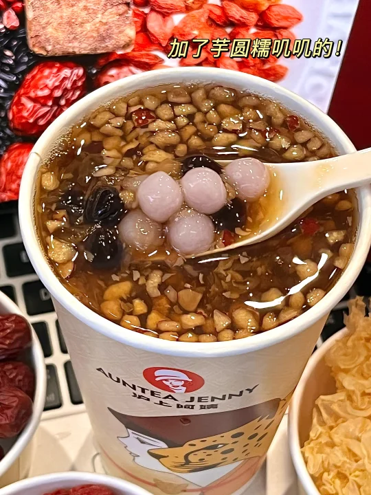✅推荐加个芋圆一口下去香香甜甜的团子在嘴里化开😭😭 搭配着暖暖甜甜的红枣蜜香,咀嚼感好足!呜呜养生脑袋狂喜!