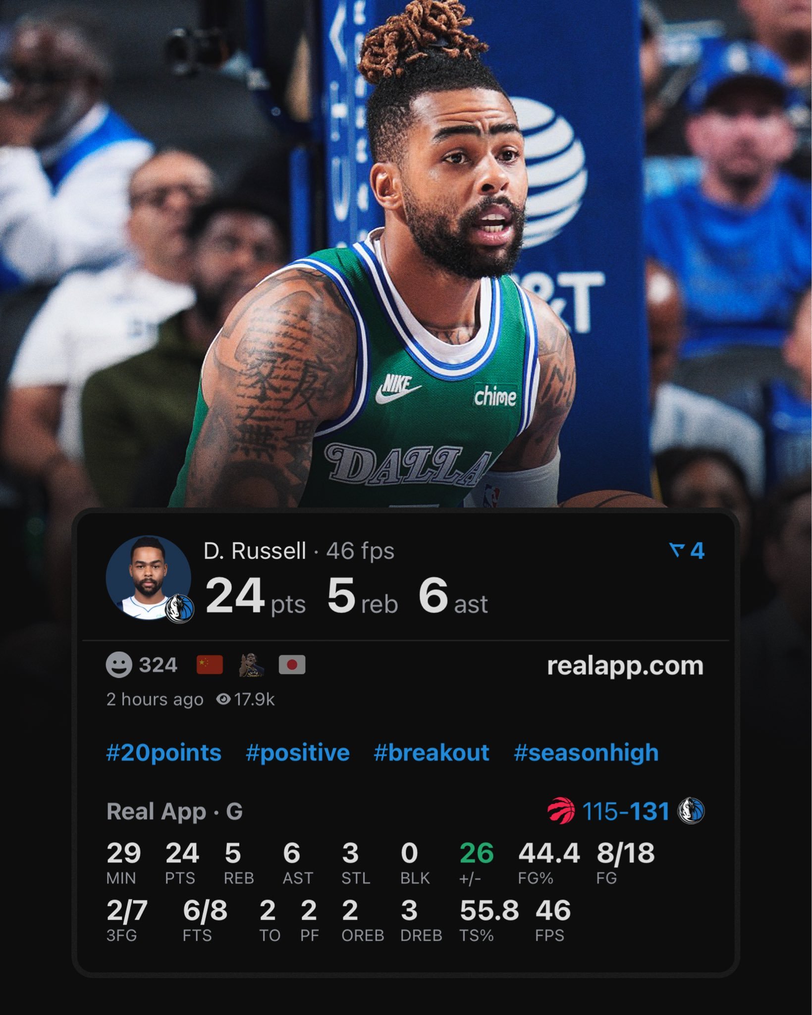 拉塞尔今天的时间和得分都超过之前两场之和,独行侠赛季首胜,弗拉格得分再创新高,且今天0失误。