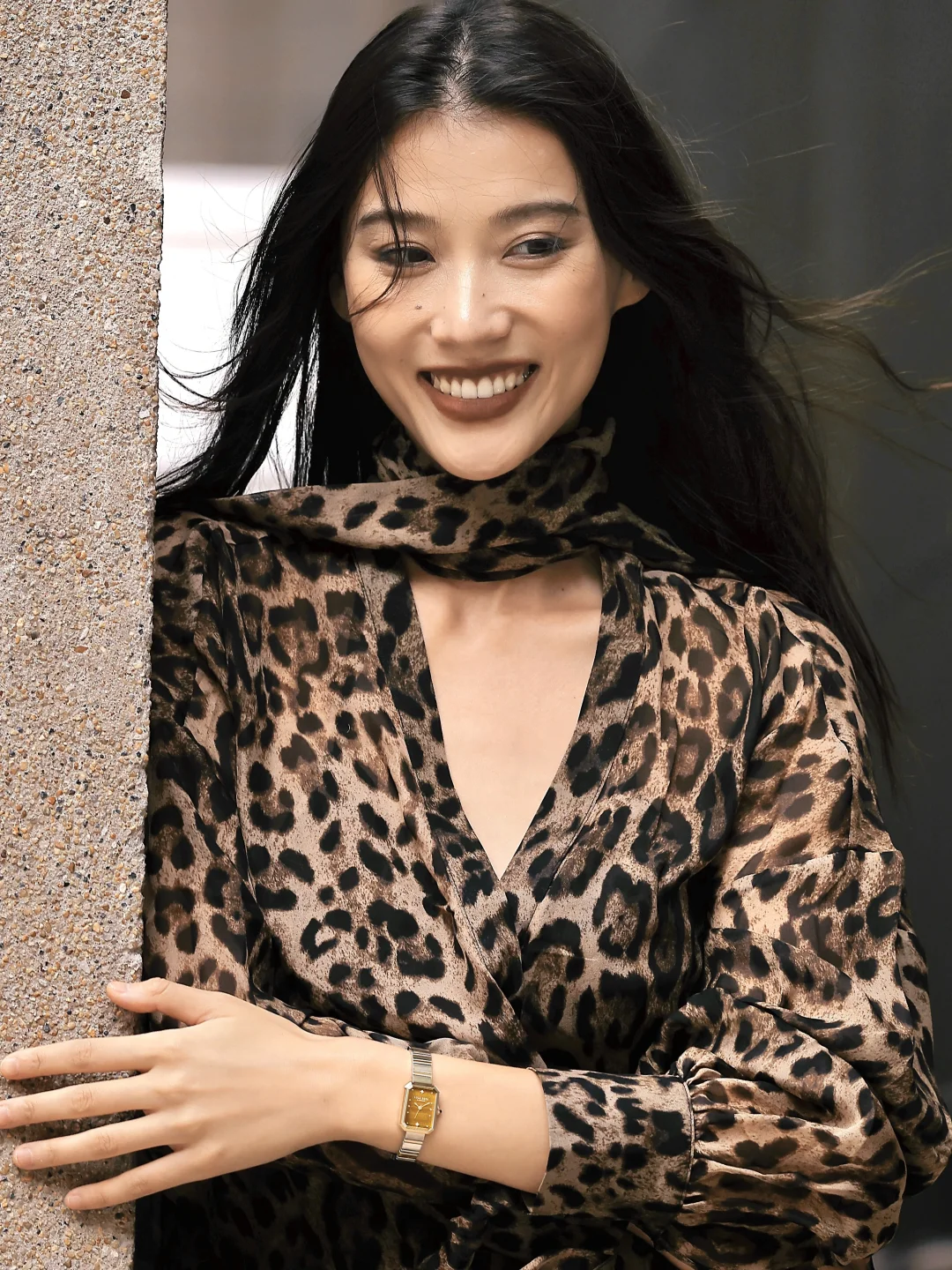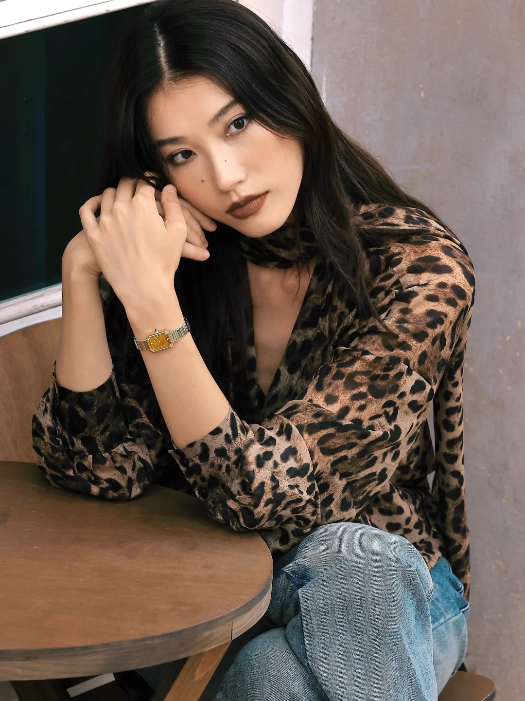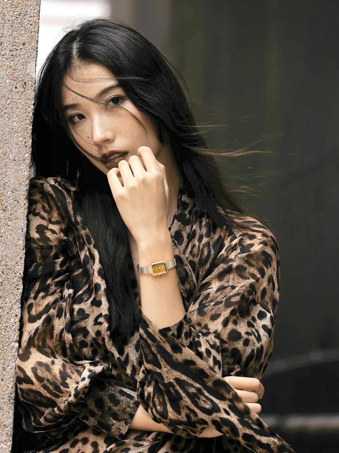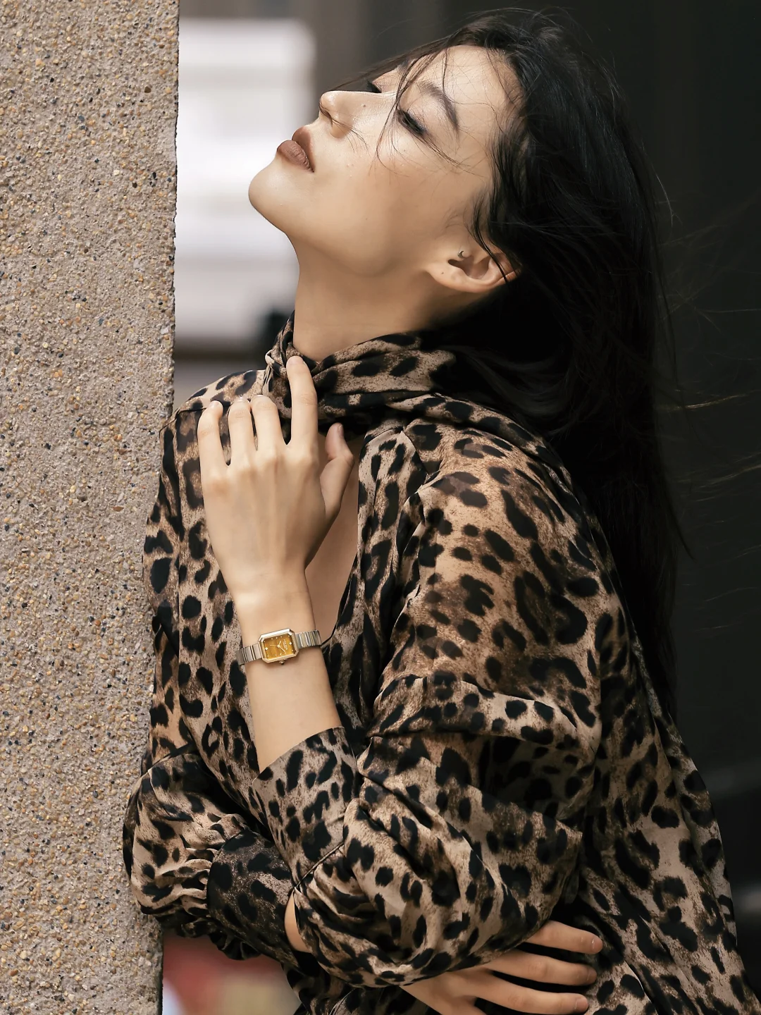 下午换上豹纹衬衫,戴上金银相间的钢表带,