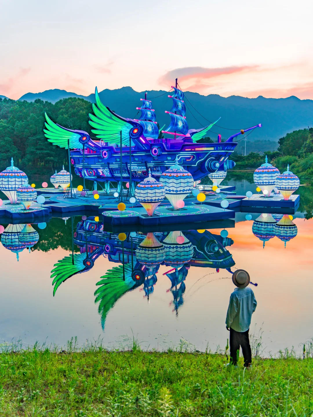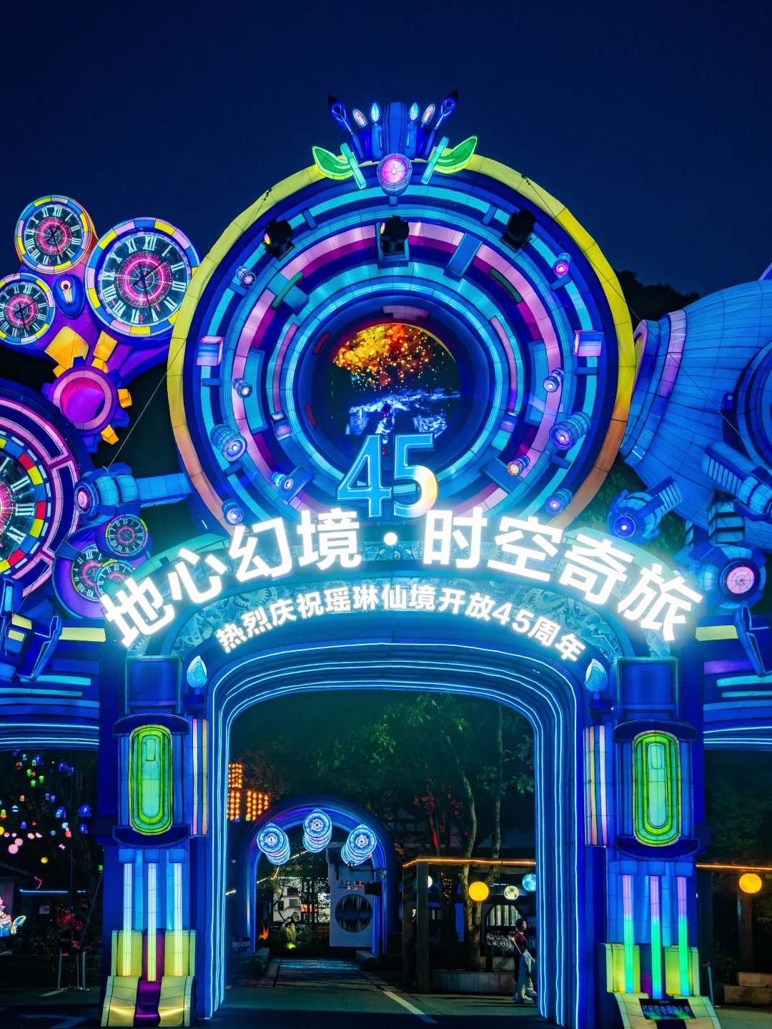 出口处有很多夜游装置艺术,不用特意打灯就自带光感,颜色偏梦幻童话系🌈
