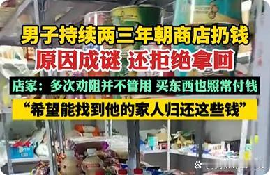 神秘男子持续两三年向商店"扔钱" 店主无奈求助 广东梅州一家调料批发店近日因一名神秘顾客的异常行为引发关注。近两三年来,一名男子多次到店购物时,在正常付款后,会以隐蔽方式将现金留在收银台,累计金额达2300多元。当店主刘女士试图归还时,男子均坚决否认并迅速将钱放回,随后离开。 刘女士表示,该男子行为虽怪异但并无恶意,购物时也表现正常。由于多次劝阻无效,店家希望通过媒体联系其家人,妥善处理这笔款项。目前,男子动机仍不明确,有人猜测可能是报恩或心理因素所致,但当事人始终未透露原因。 这一离奇事件引发网友热议,有人称赞男子"做好事不留名",也有人担忧其心理健康。店家表示,希望尽快找到男子或其家属,了解情况并归还钱款。