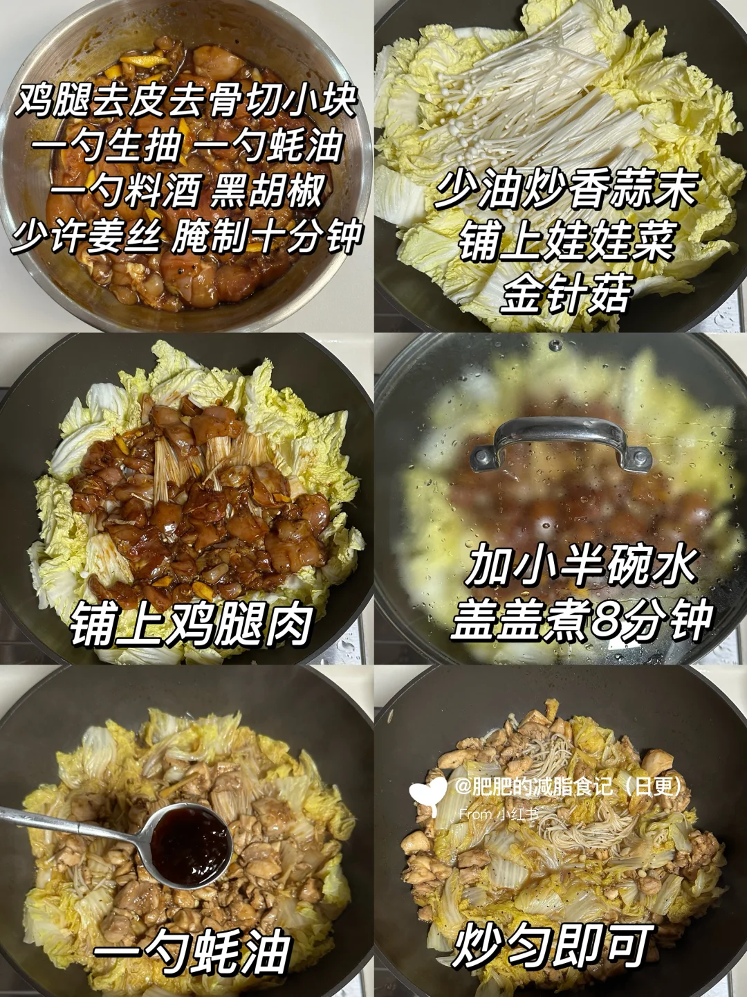 分享这个巨好吃的娃娃菜金针菇焖鸡腿!!真的好香!好满足!鸡腿肉高蛋白!巨饱腹!娃娃菜也绝了!巨好吃!姐妹们冲! 做法如图!姐妹们快去试试吧!