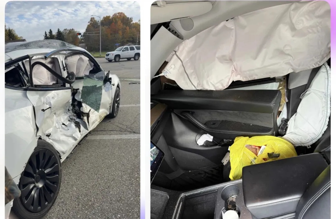 遭严重侧撞Model Y几乎报废,乘员舱依然坚挺保车主毫发无伤安全离开