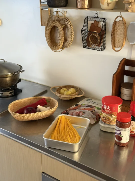 周日的早午餐,想吃一碗辣辣的韩式海鲜面,做法和材料都很方便(在图四),就是海鲜别煮老就非常好吃了 用的玉米面条,筋筋道道的,昨晚放进冰箱泡好的,水烧开烫一下就能吃了 把暖炉搬出来zui大的受益者出现➡️🐱😺🐶